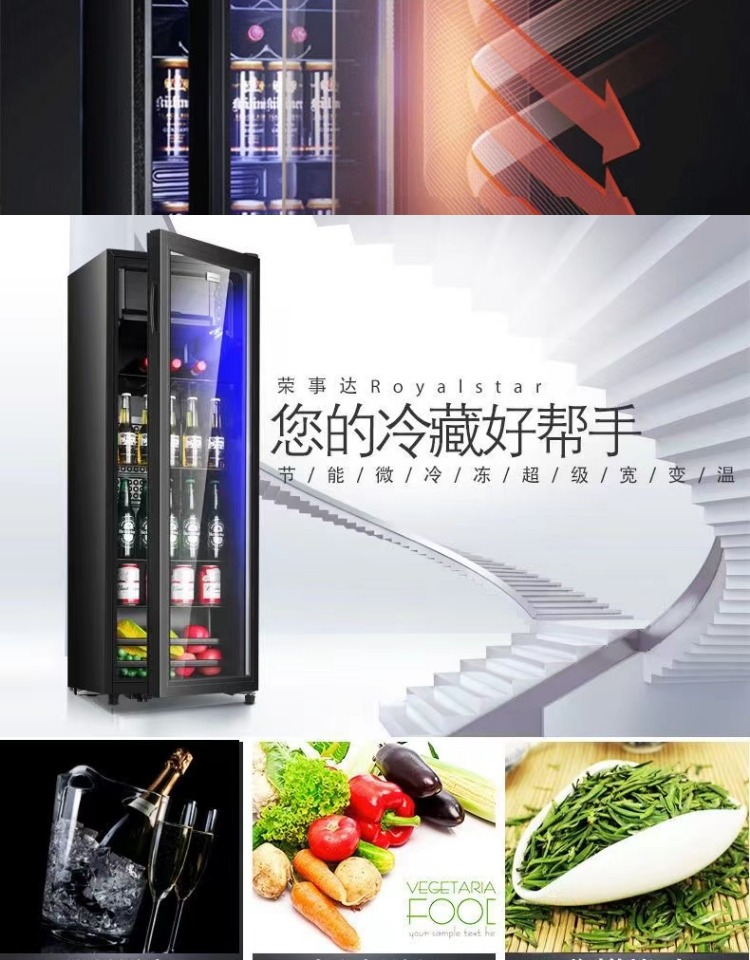 • 239L 컴퓨터 디지털 디스플레이 + 완전 냉장 + LED 조명 + [공냉식 동관]