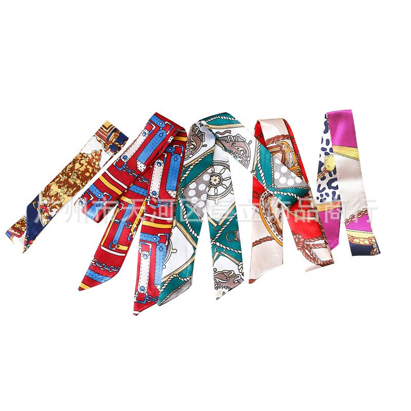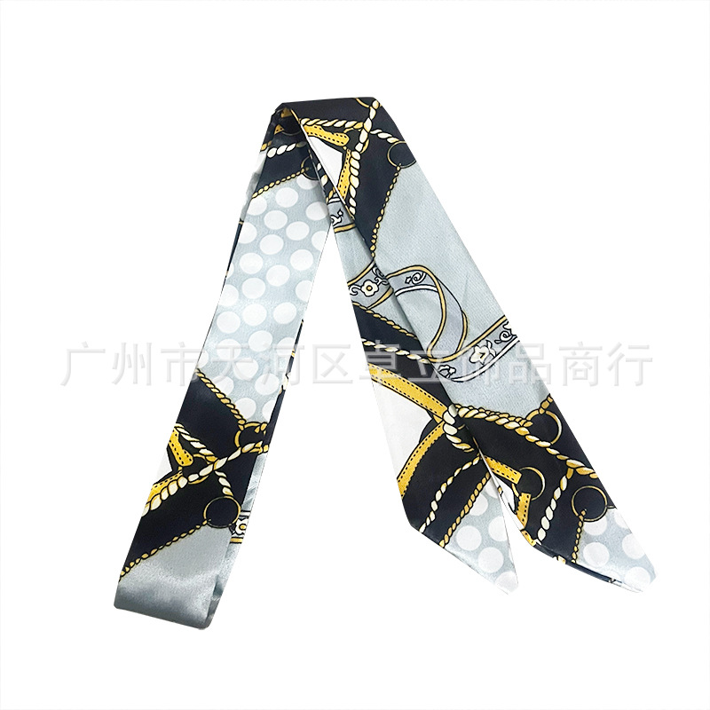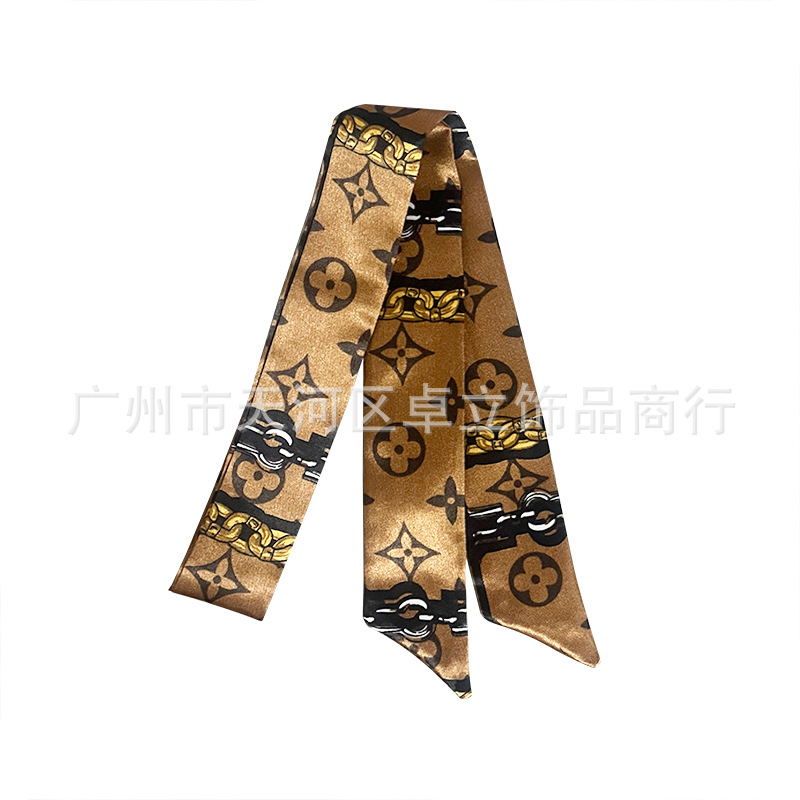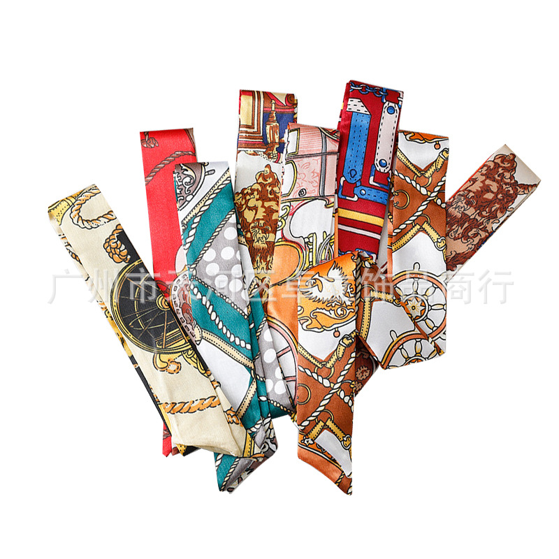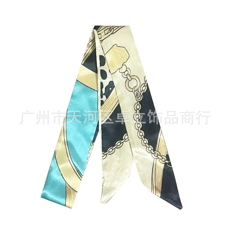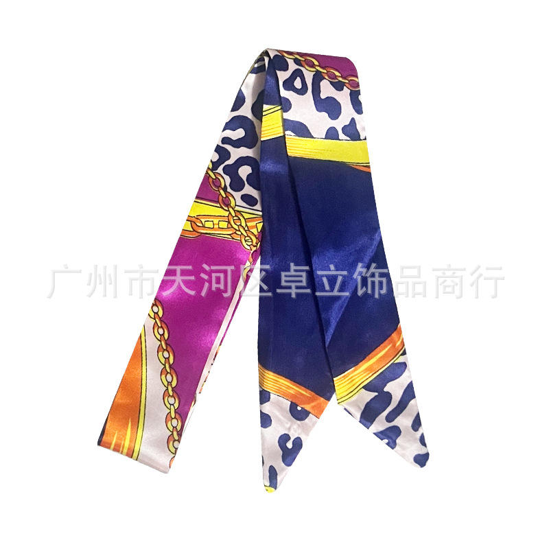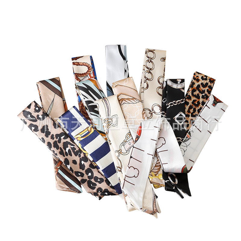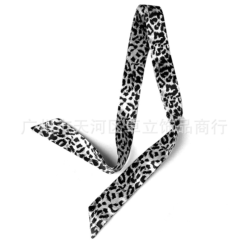 레오파드 프린트 롱 실크 스카프, 가방 스카프, 새틴 모조 실크 스카프, 기념품 리본, 리본 선물 상자