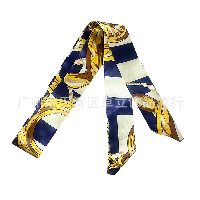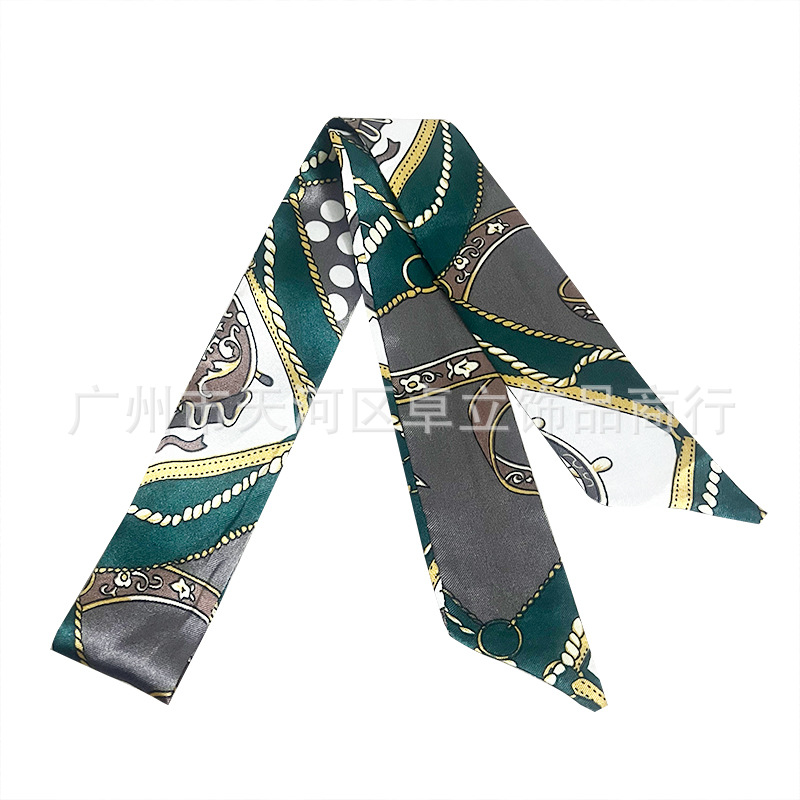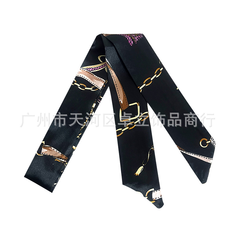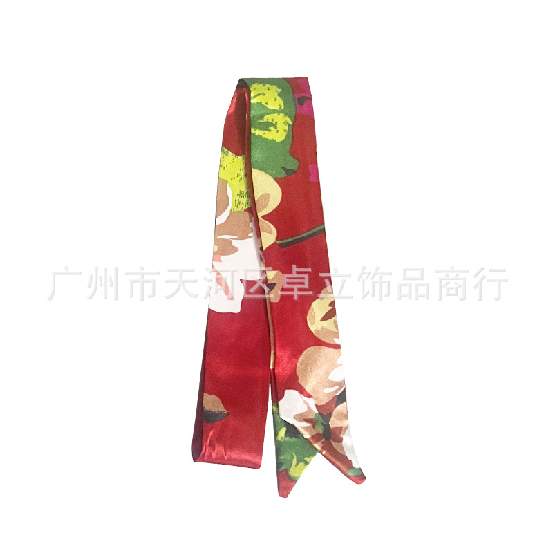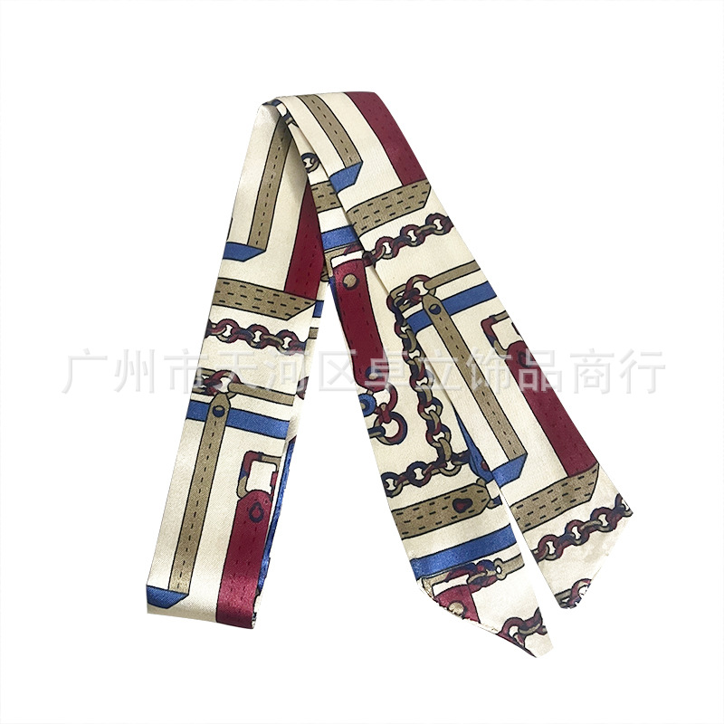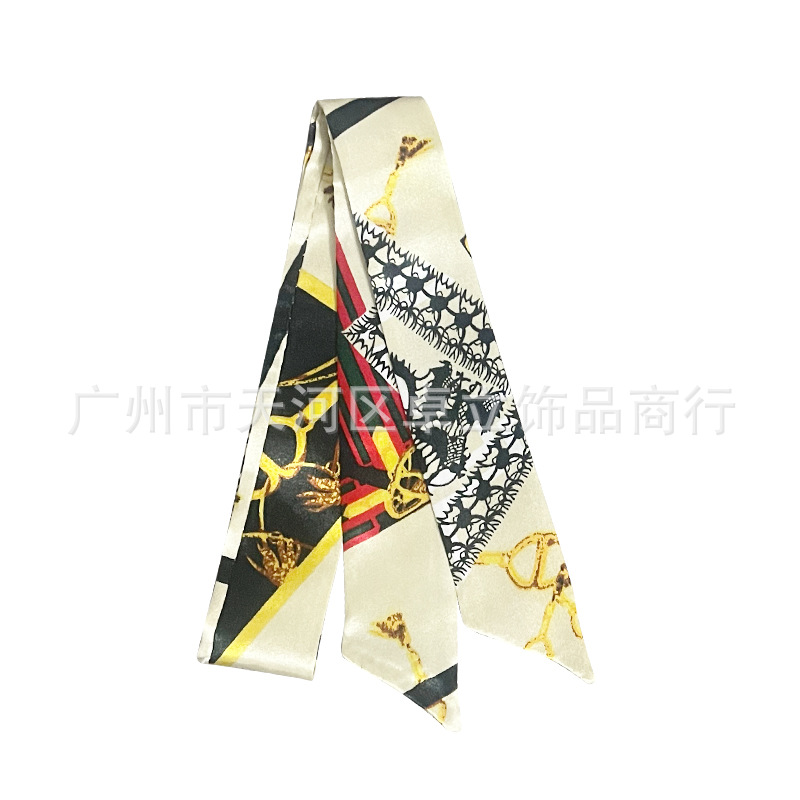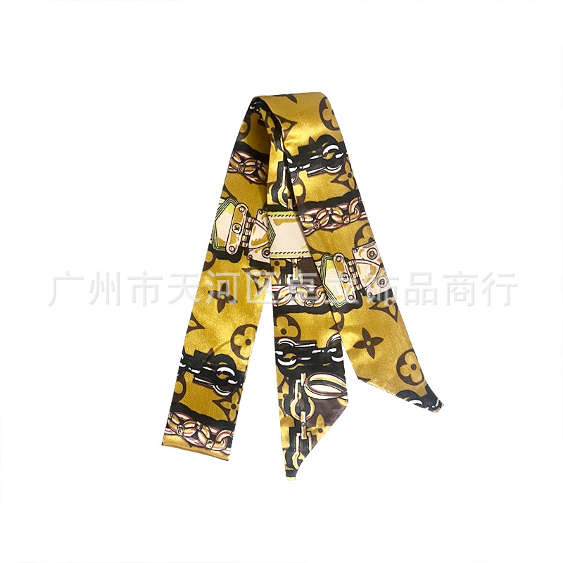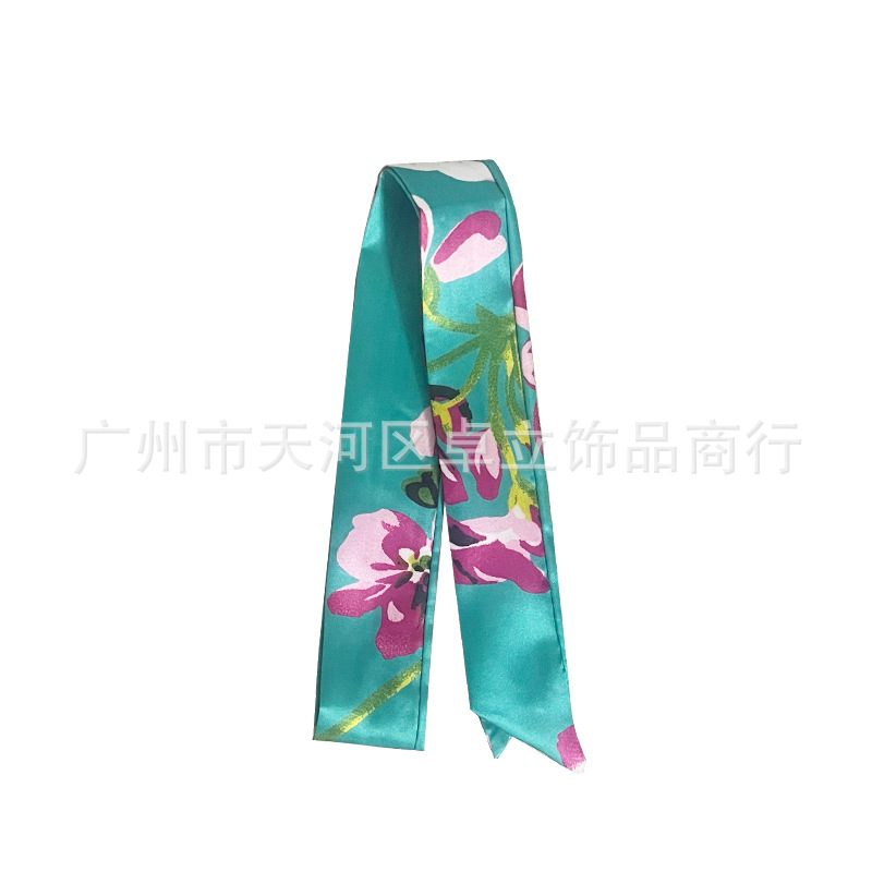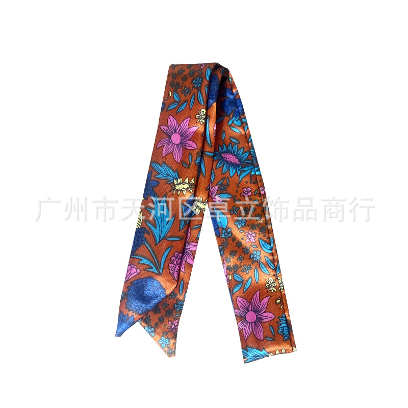 레오파드 프린트 롱 실크 스카프, 가방 스카프, 새틴 모조 실크 스카프, 기념품 리본, 리본 선물 상자