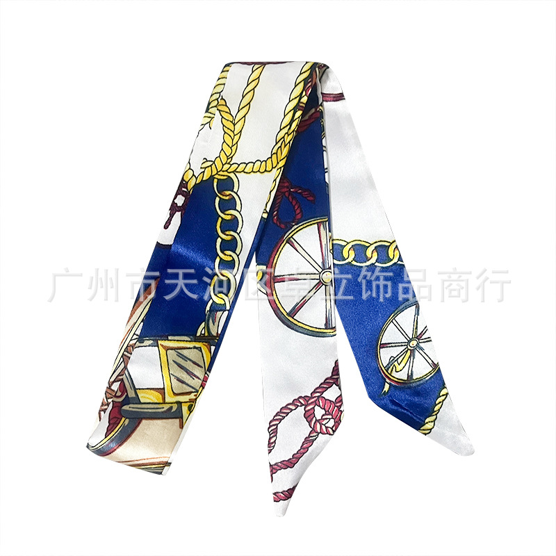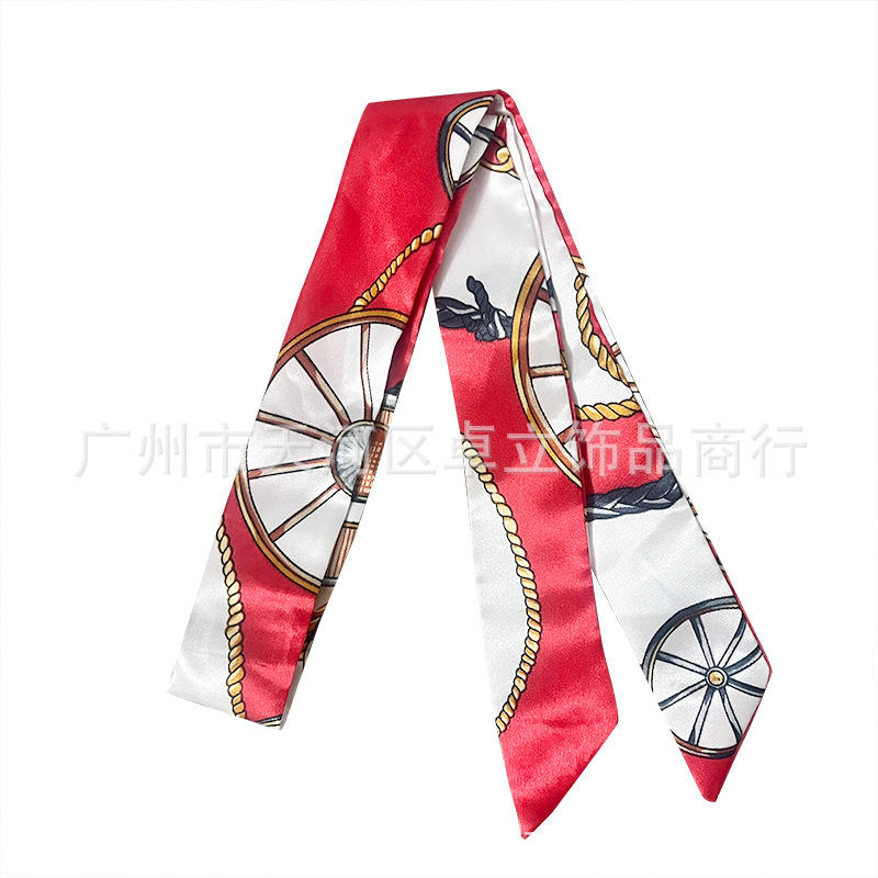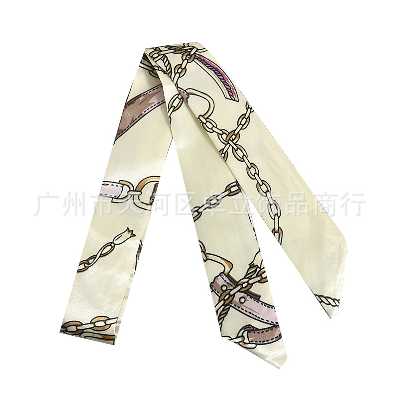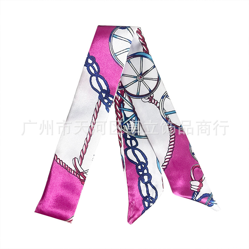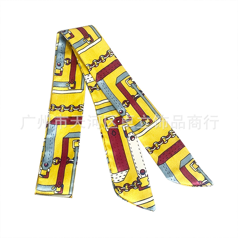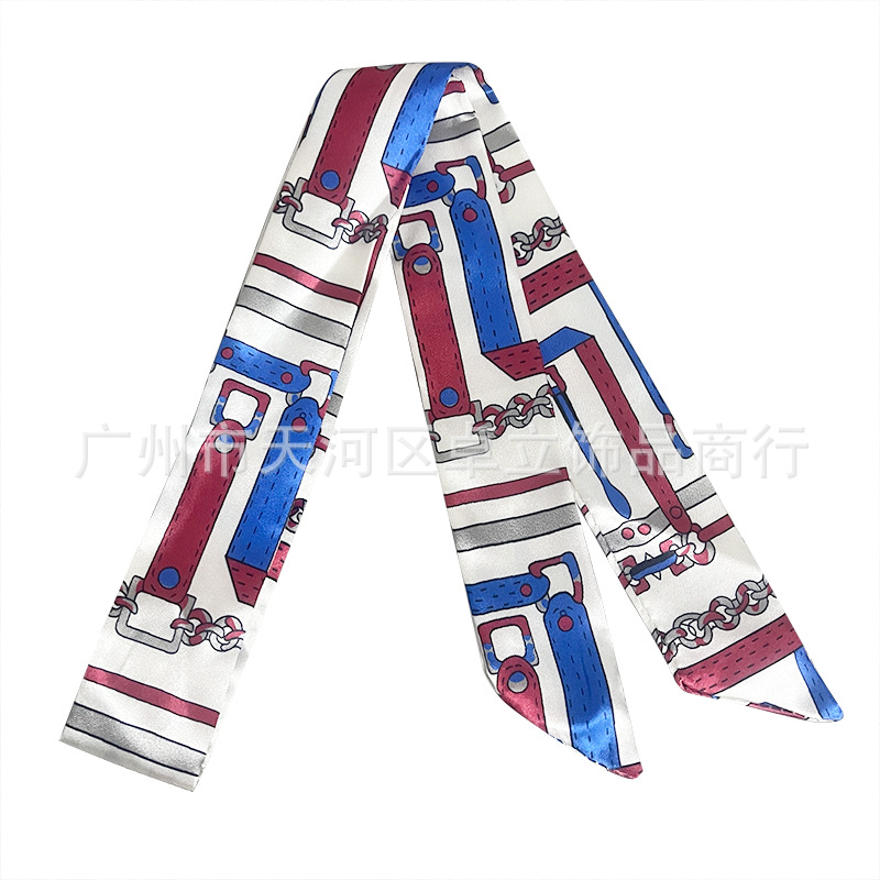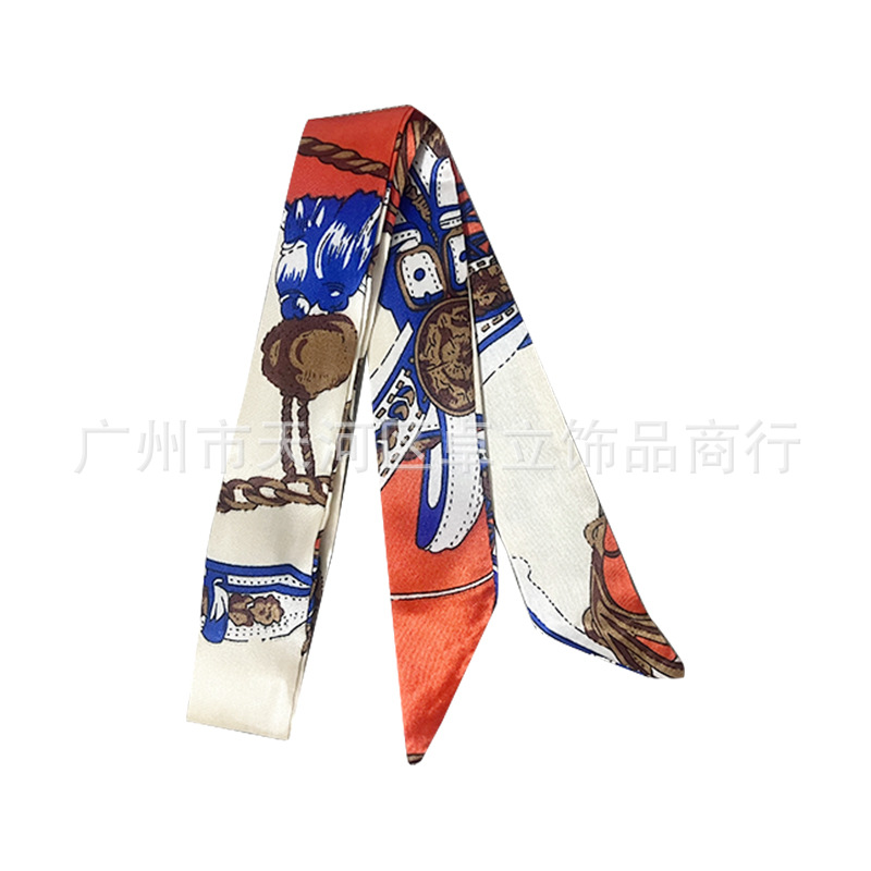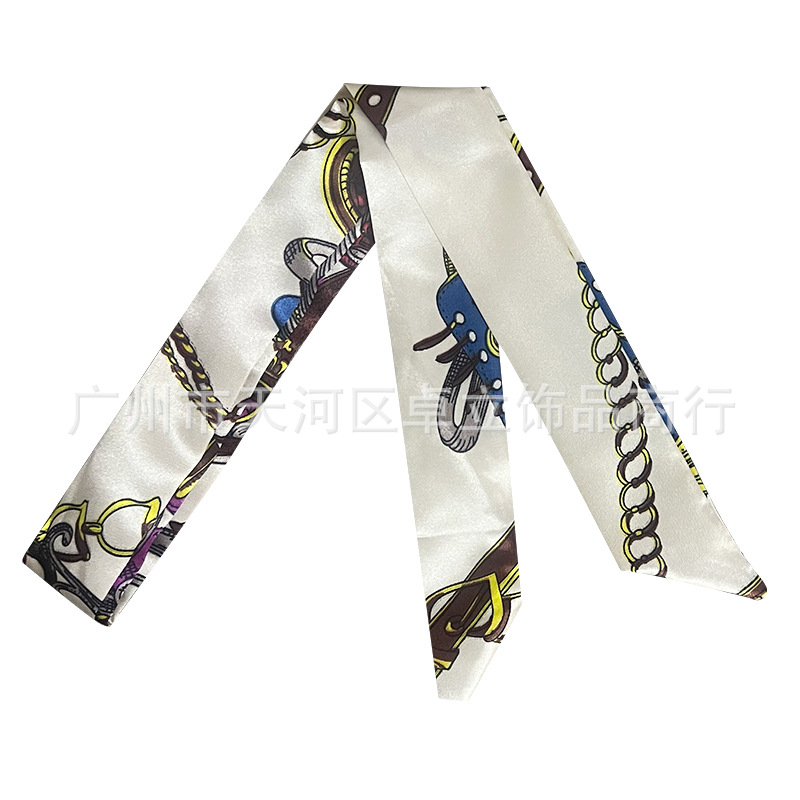 레오파드 프린트 롱 실크 스카프, 가방 스카프, 새틴 모조 실크 스카프, 기념품 리본, 리본 선물 상자