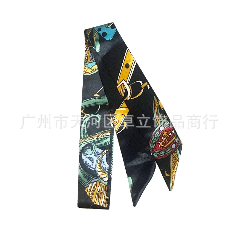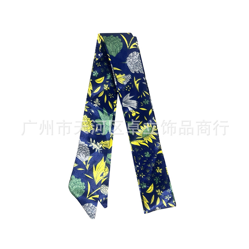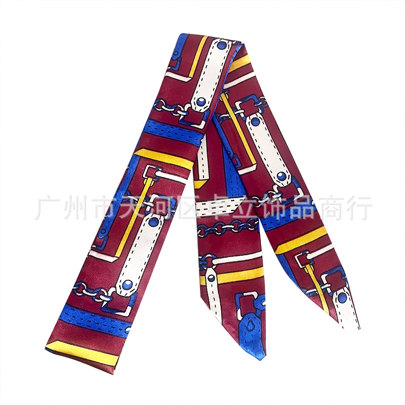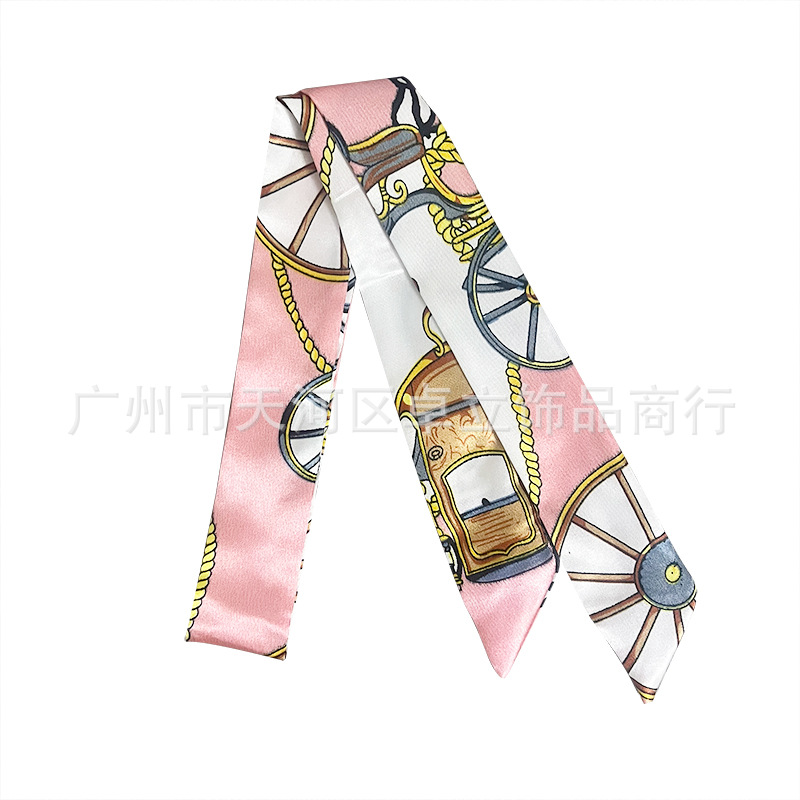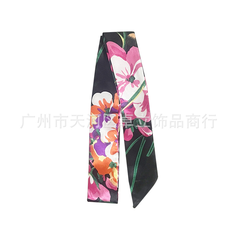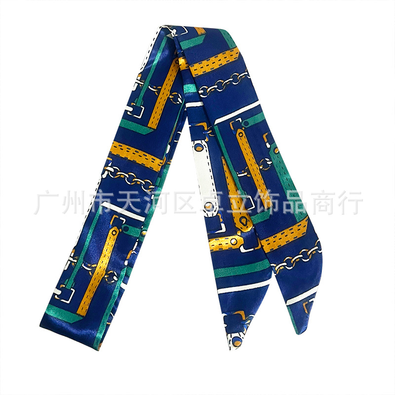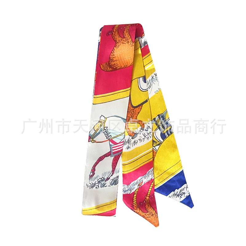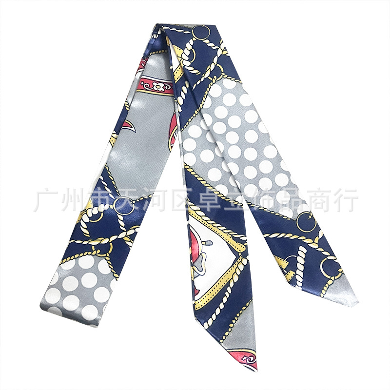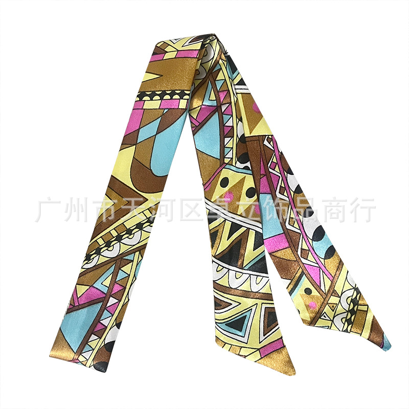 레오파드 프린트 롱 실크 스카프, 가방 스카프, 새틴 모조 실크 스카프, 기념품 리본, 리본 선물 상자