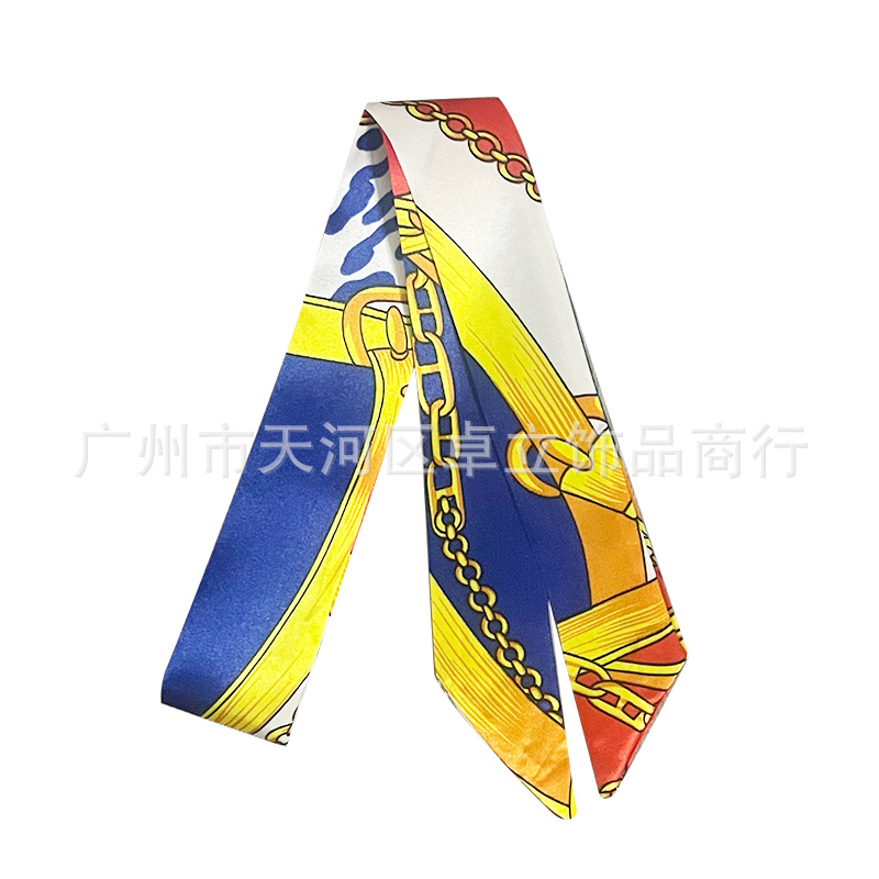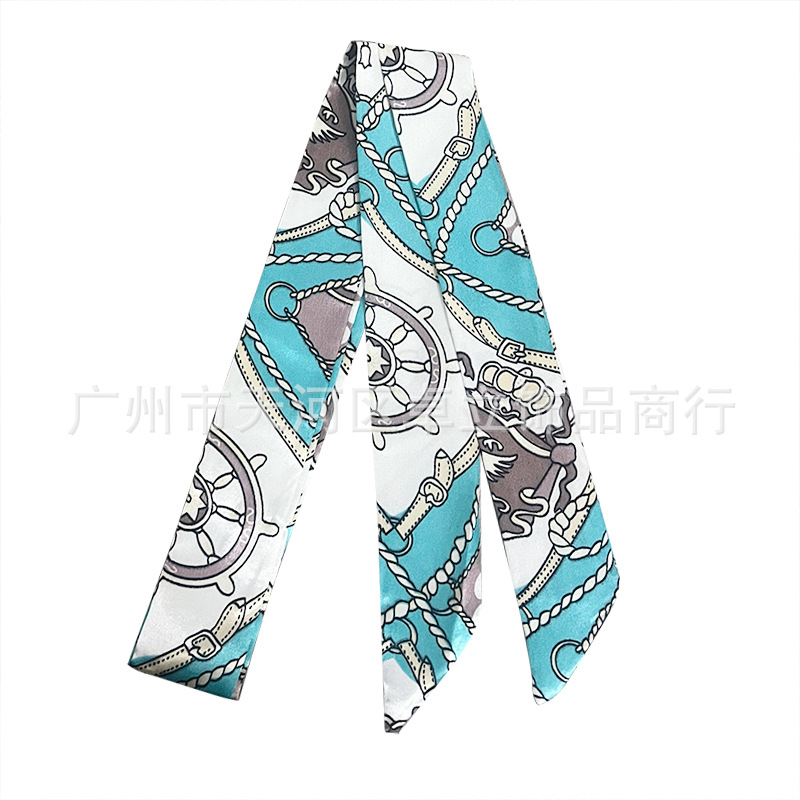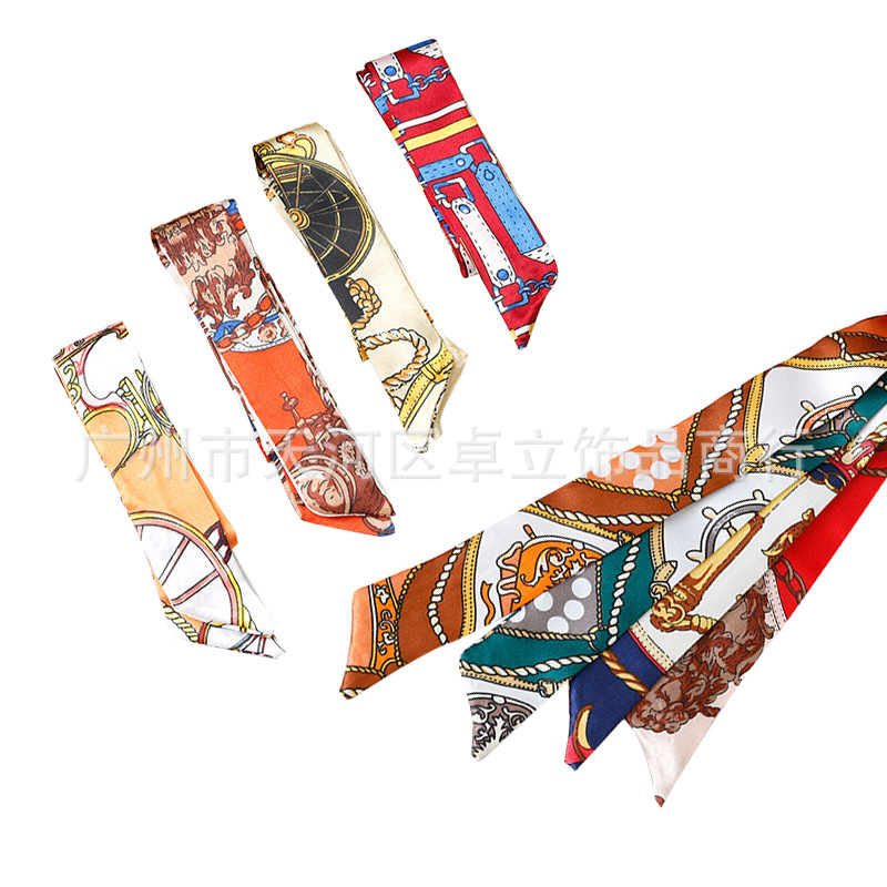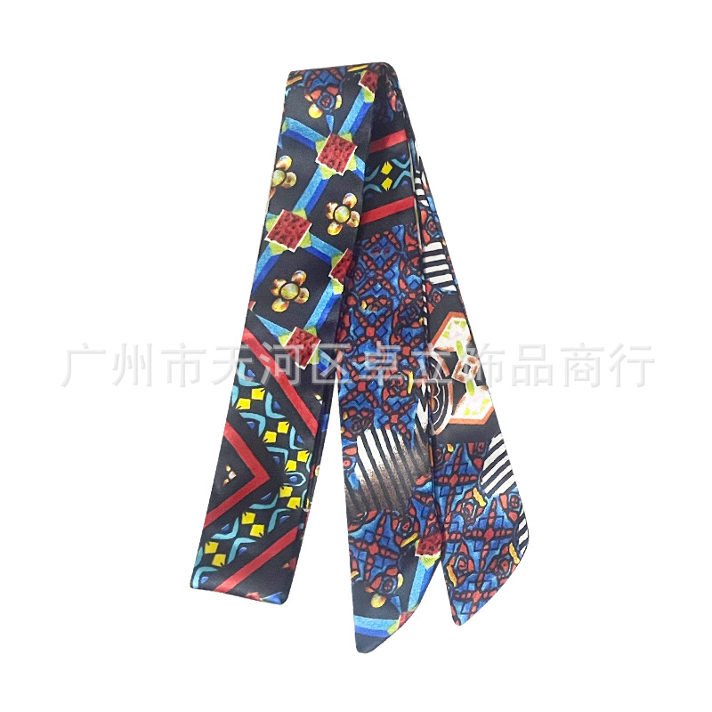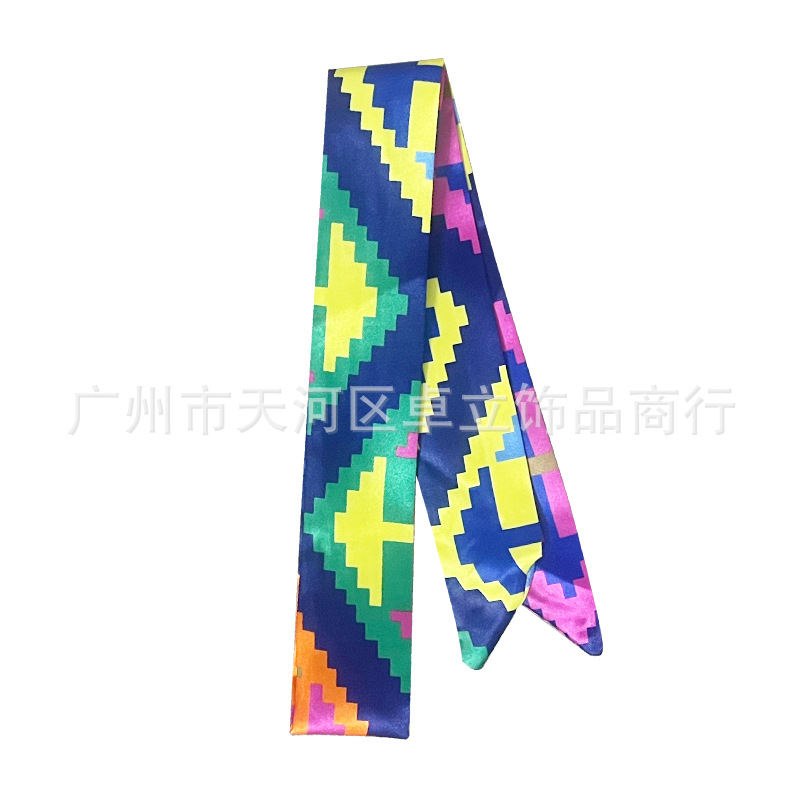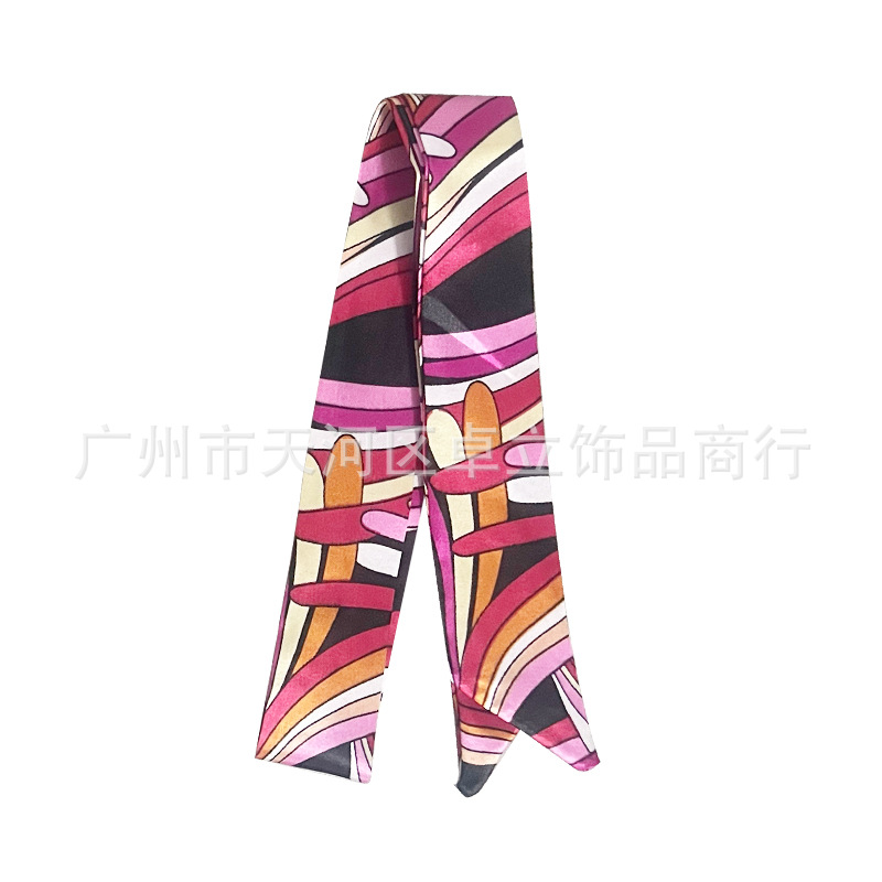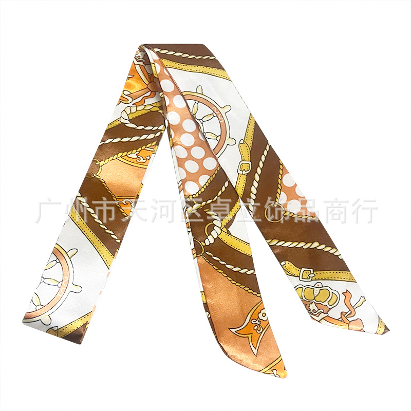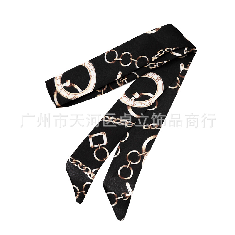 레오파드 프린트 롱 실크 스카프, 가방 스카프, 새틴 모조 실크 스카프, 기념품 리본, 리본 선물 상자