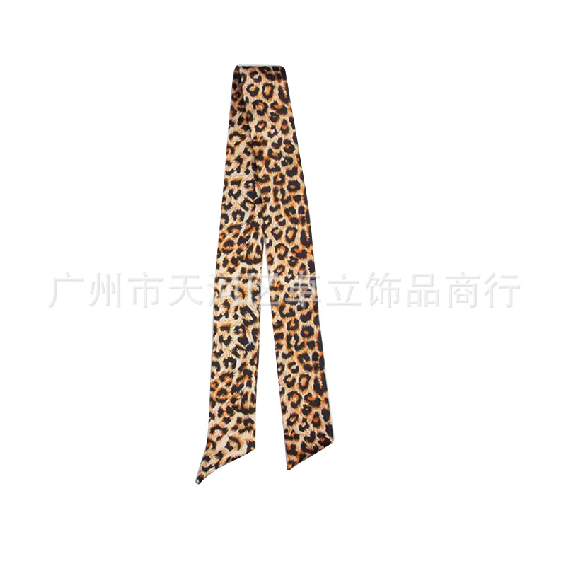 레오파드 프린트 롱 실크 스카프, 가방 스카프, 새틴 모조 실크 스카프, 기념품 리본, 리본 선물 상자스토어 가기