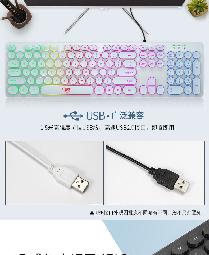• 尊享版-白色彩虹光+半透白色键盘膜