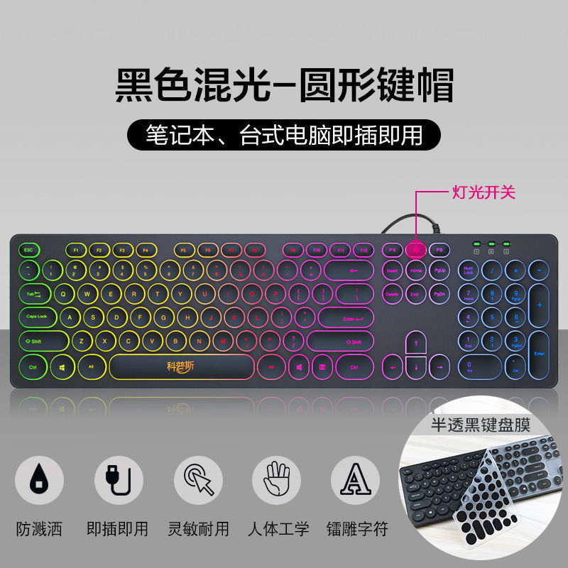 • 尊享版-黑色彩虹光+半透黑色键盘膜