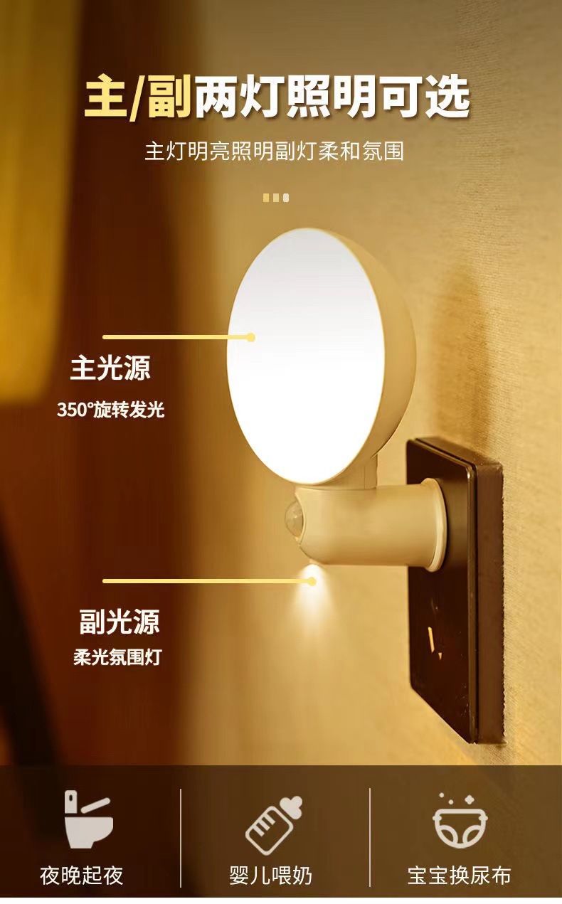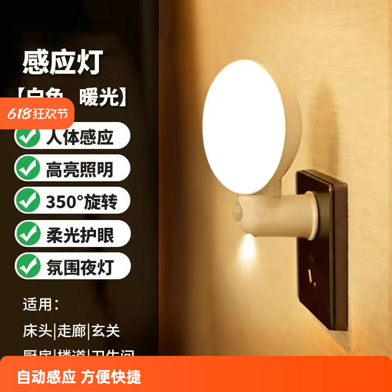 지능형 인체 센서 램프 플러그인 욕실 화장실 통로 복도 벽 램프 자동 음성 제어 침대 옆 야간 조명