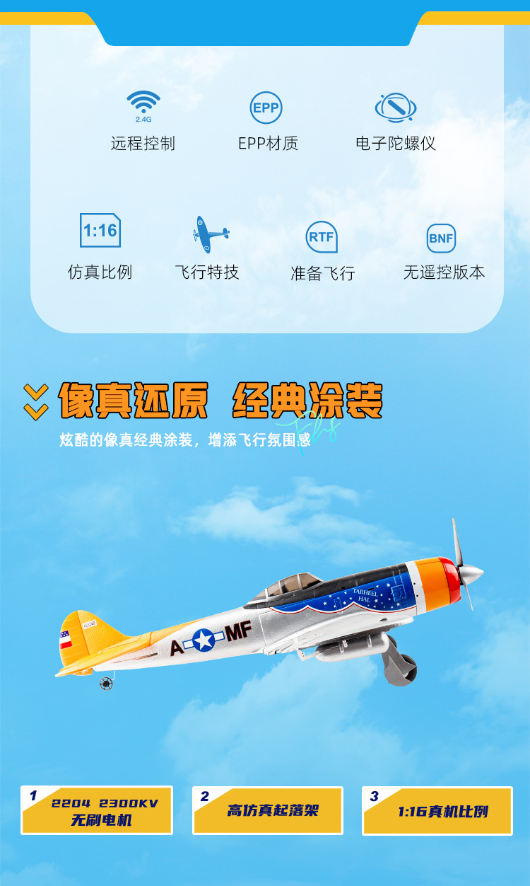 2.有较低的失速速度和较强的滑翔性能。飞行稳定,易于操控。可实现多种航模特技动作。如横滚,倒飞,筋斗等