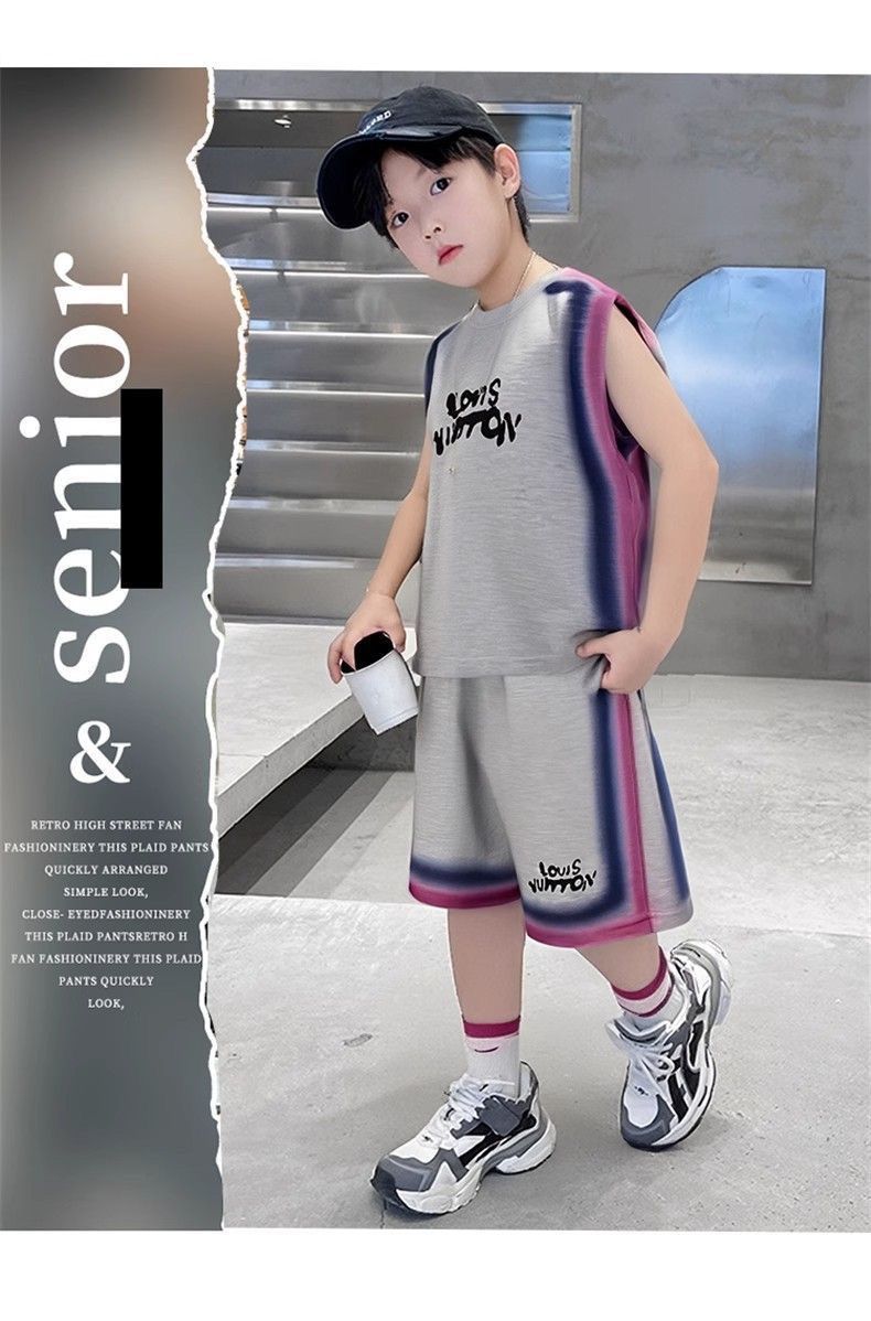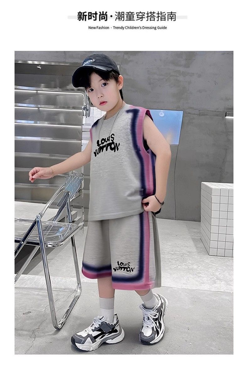 남아용 여름 정장, 큰 어린이용 멋진 조끼, 루즈한 반바지, 남아용 여름 민소매 운동복 2피스 세트, 트렌디함스토어 가기