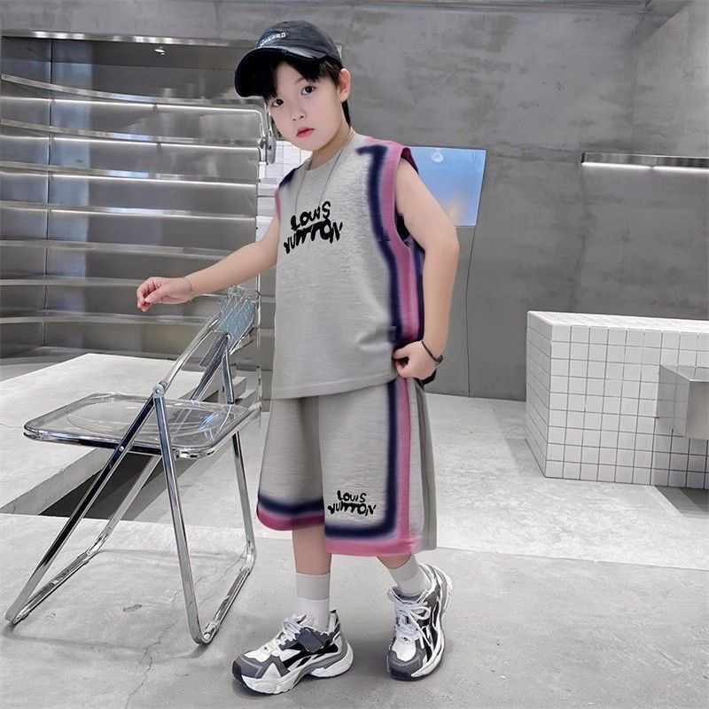 남아용 여름 정장, 큰 어린이용 멋진 조끼, 루즈한 반바지, 남아용 여름 민소매 운동복 2피스 세트, 트렌디함
