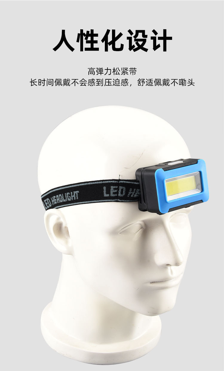 강한 빛으로 야간 낚시를 위한 국경 간 헤드라이트, 휴대용 헤드 장착형 유지 관리, 야간 라이딩, 모험 캠핑, 고출력 플라스틱 COB 헤드라이트스토어 가기
