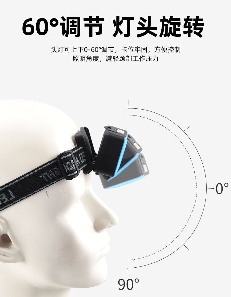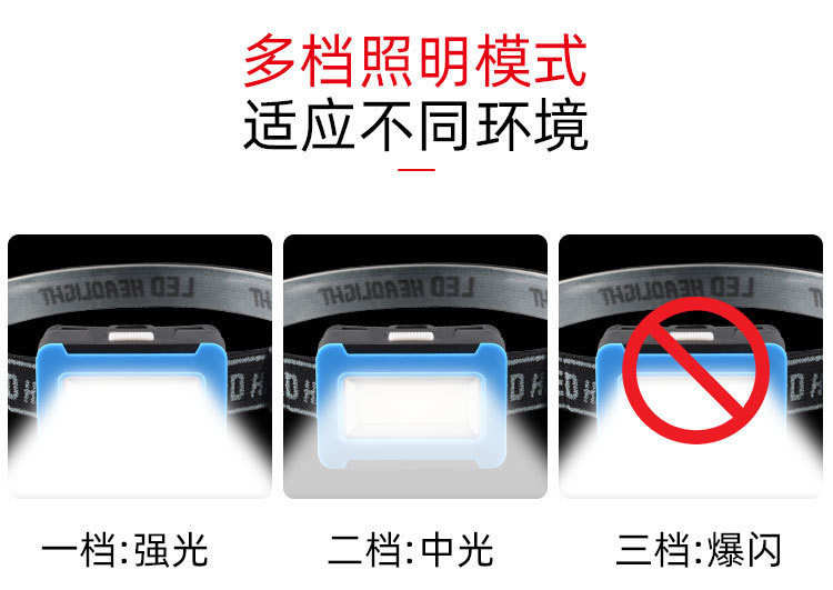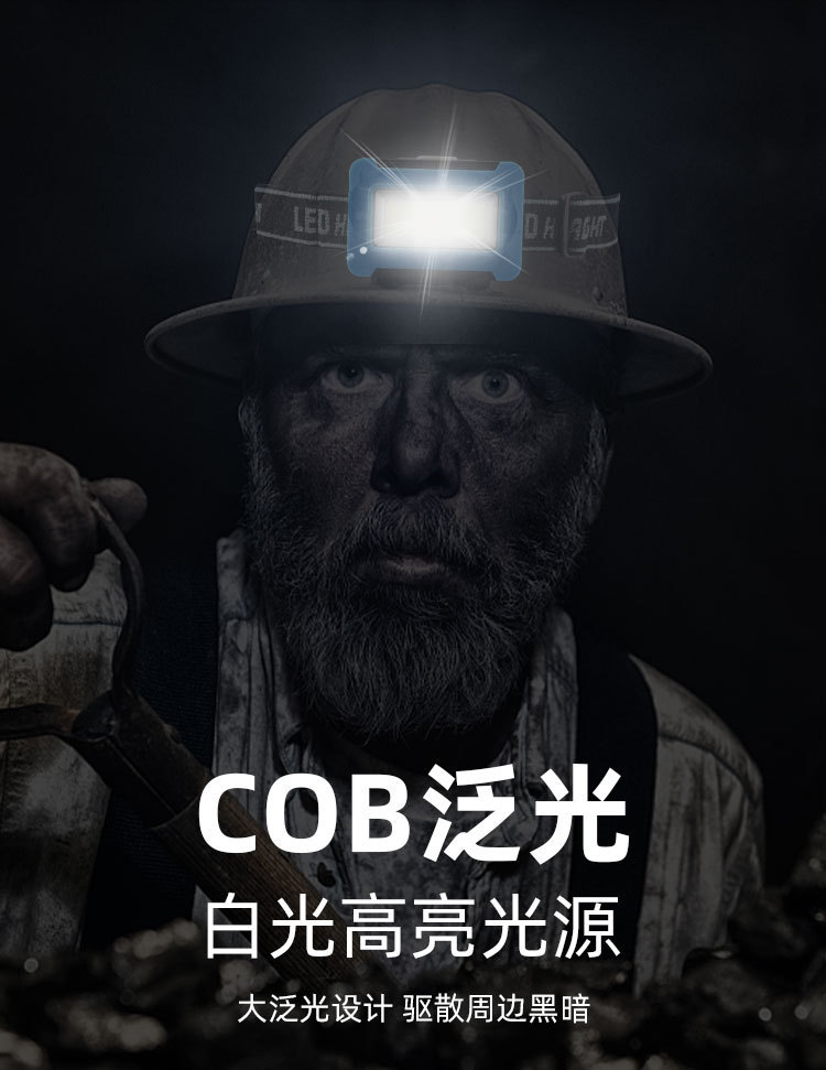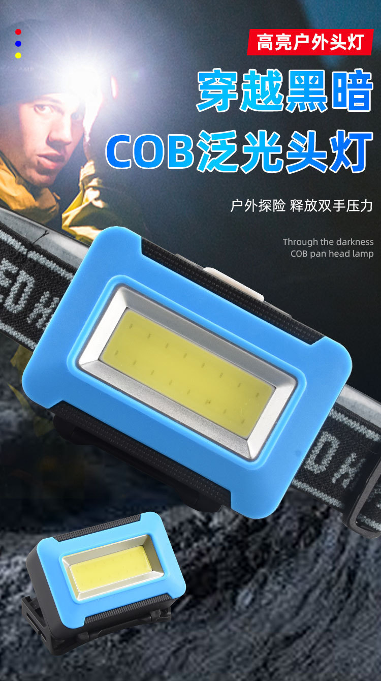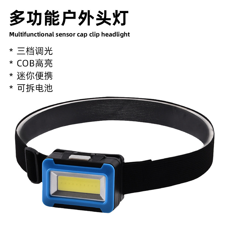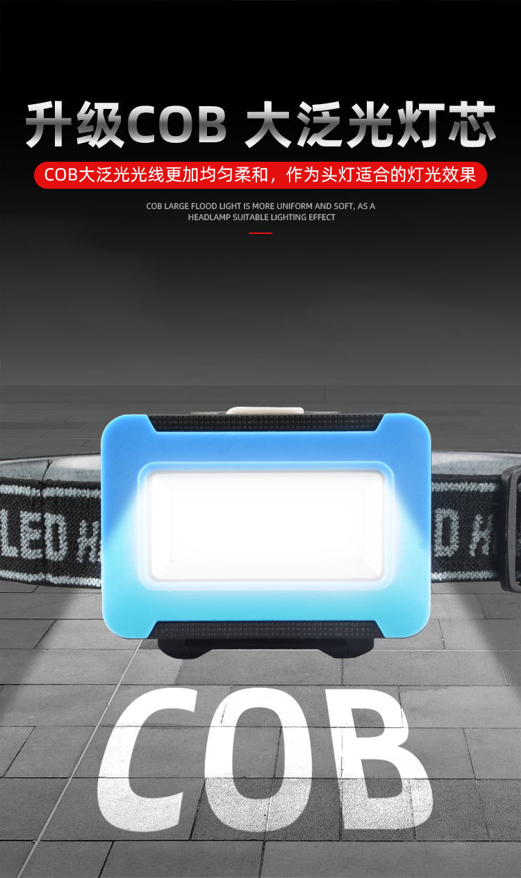 강한 빛으로 야간 낚시를 위한 국경 간 헤드라이트, 휴대용 헤드 장착형 유지 관리, 야간 라이딩, 모험 캠핑, 고출력 플라스틱 COB 헤드라이트