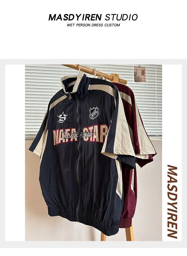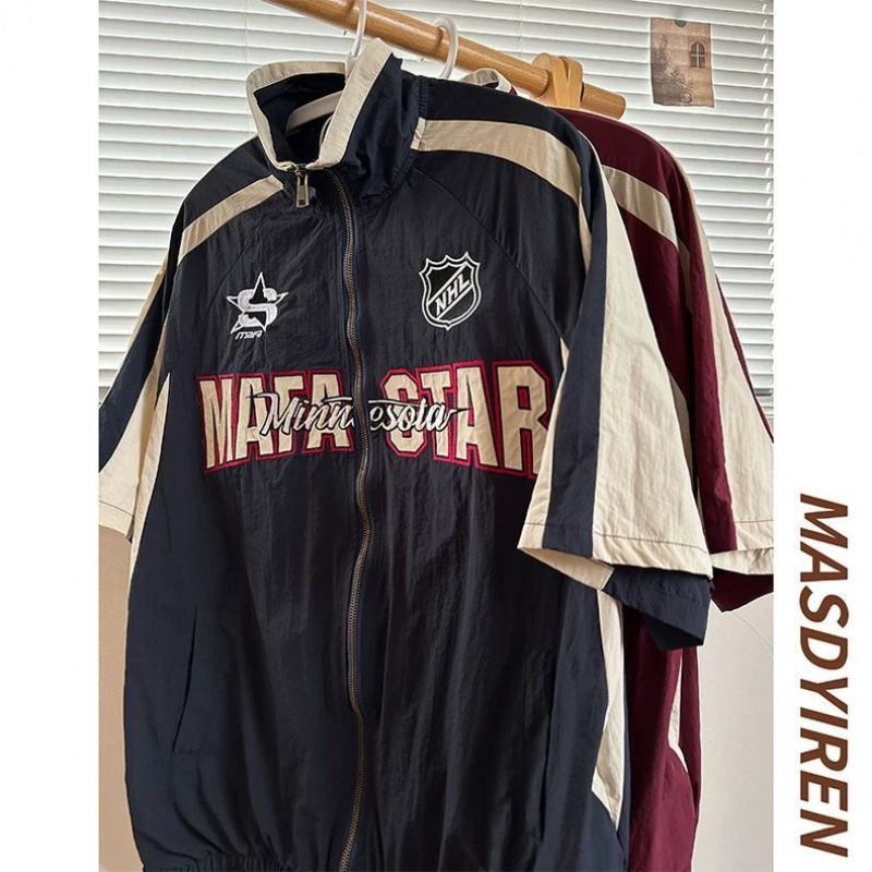 여름 플러스 사이즈 150kg 아메리칸 레트로 인 트렌디 스트리트 핸섬 얇은 반팔 재킷 코트 남성 재킷스토어 가기