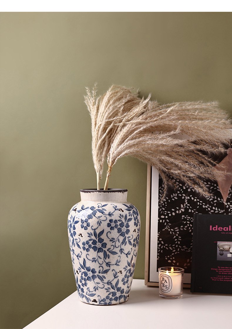 ♔ Behanmei 복고풍 중국 스타일 얼음 균열 파란색과 흰색 도자기 꽃병 느낌 홈 장식 수경 꽃병