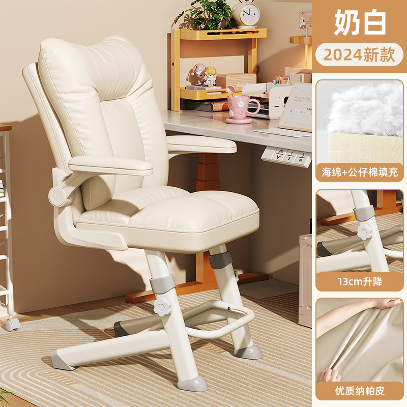 ♔ 가정 학습 책상 의자 침실 등받이 의자 편안한 좌식 크림 작은 사각형 의자 쓰기 의자 컴퓨터를 들어 올릴 수 있습니다스토어 가기