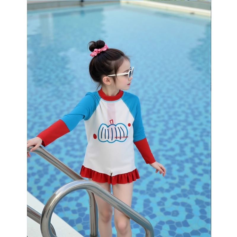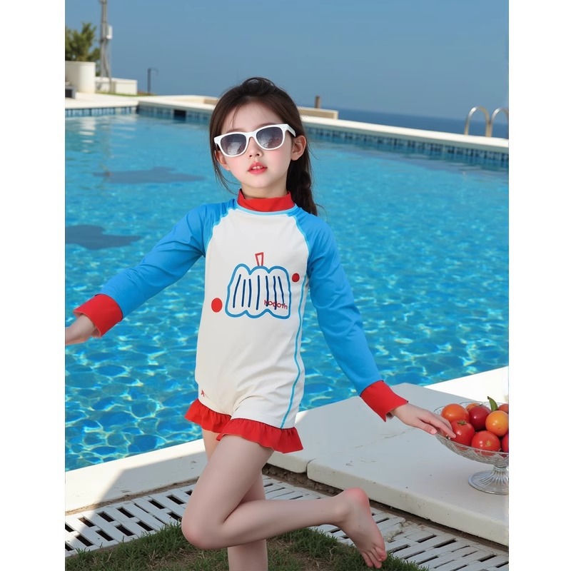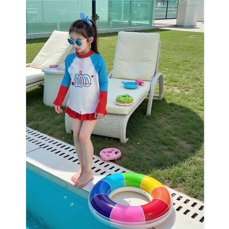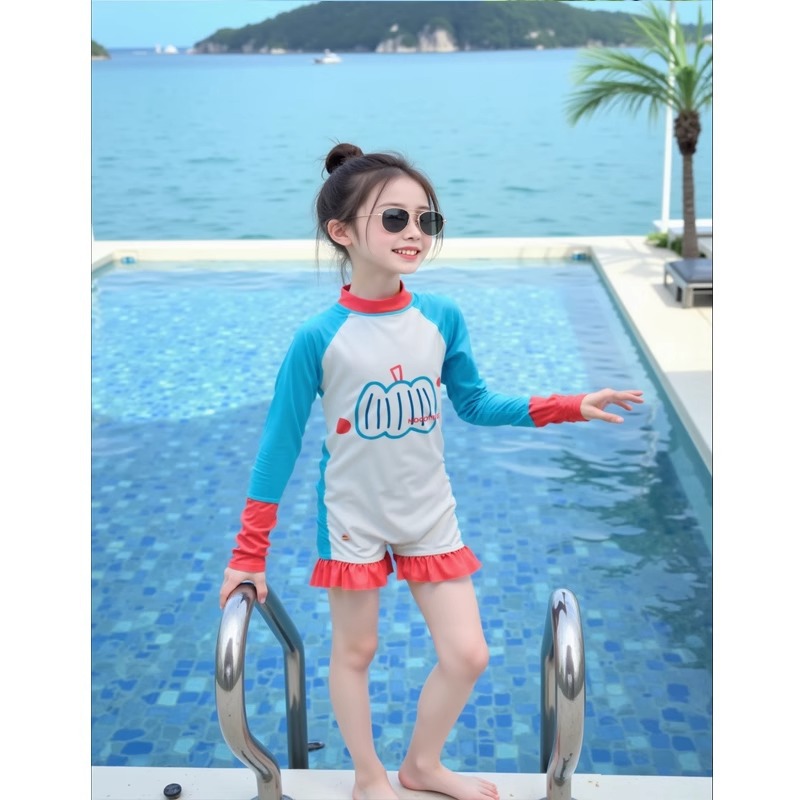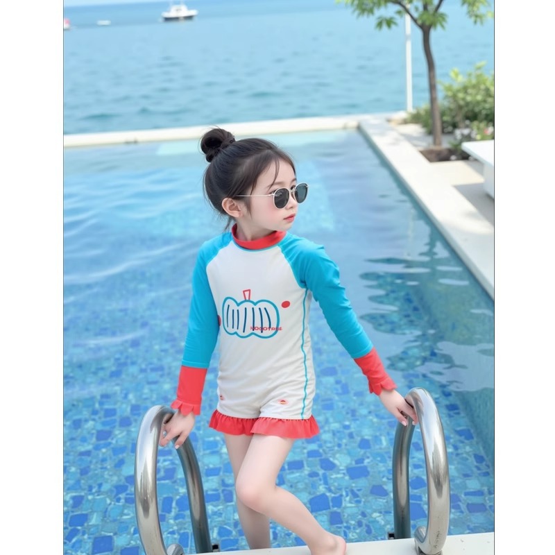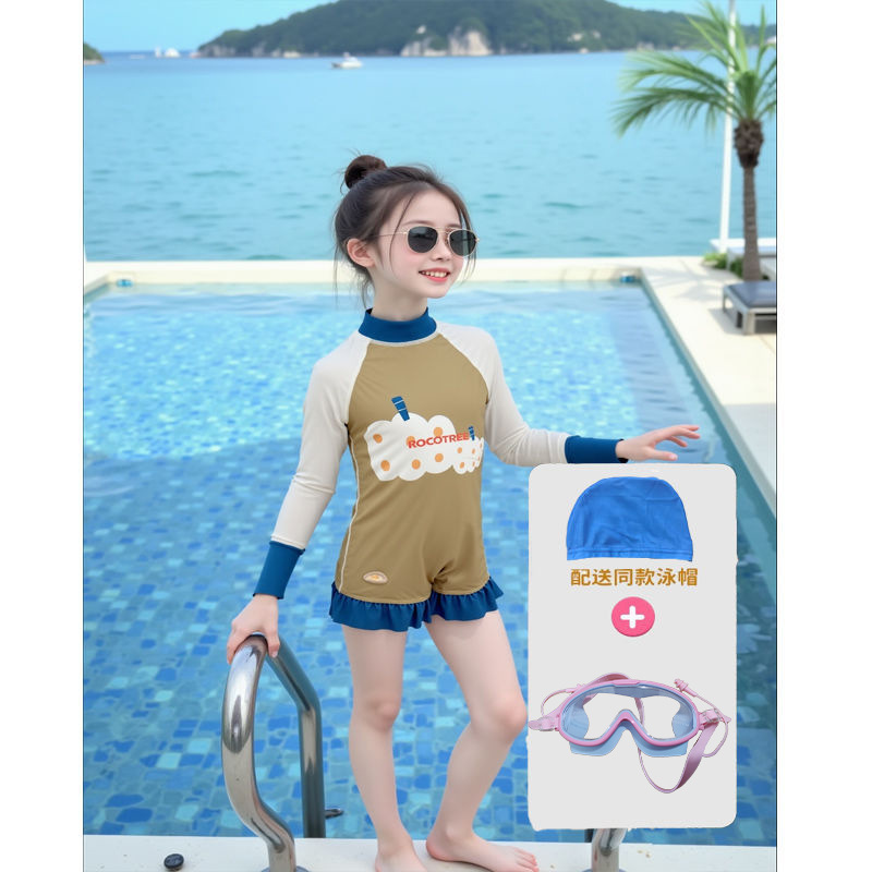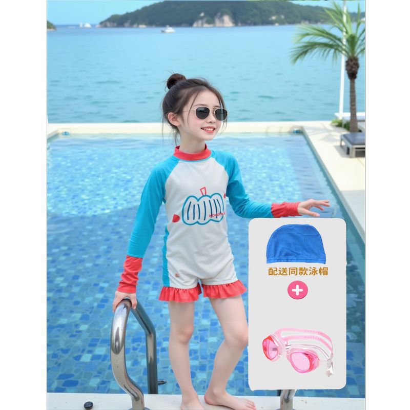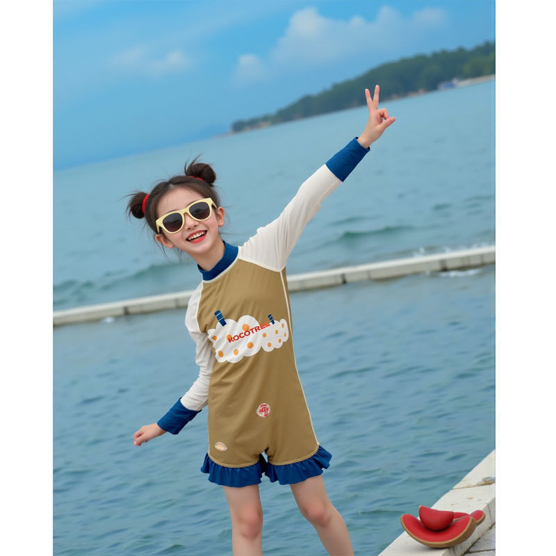 어린이 수영복 소녀 태양 보호 긴팔 원피스 해변 휴가 수영복 접합 유행 수영복 해변 서핑 슈트
