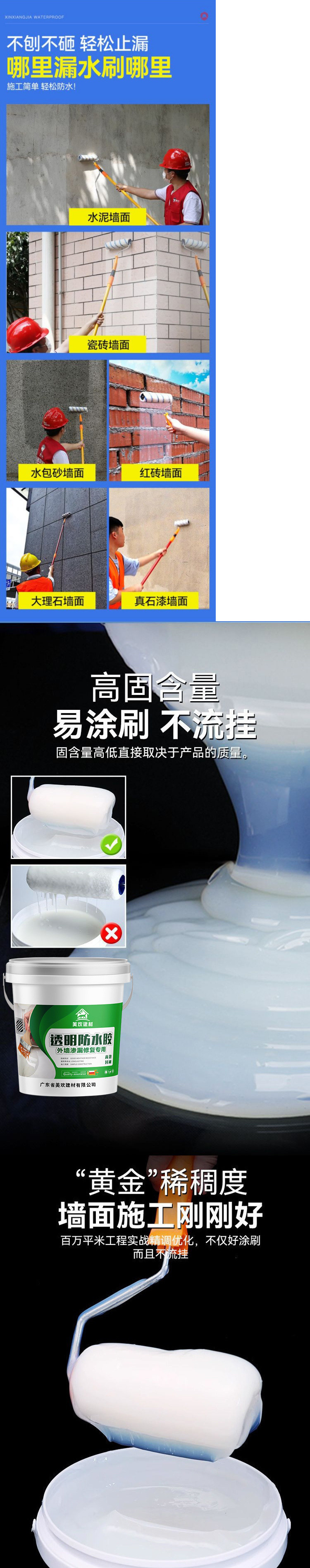 • 5kg / 배럴, 단일 패스 30 평방 미터 / 두 번 브러시 15 평방 미터 - 군용 강력 유형 / 서리 방지 및 내광성 외벽 발코니 지붕