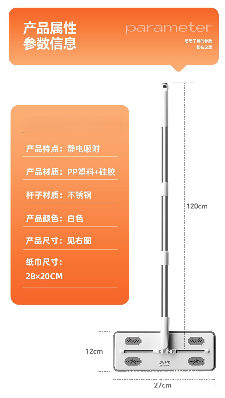 정전기 먼지 제거 종이 걸레, 손세탁이 필요 없는 평면 걸레, 가정용 일회용 걸레, 천 클립, 게으른 사람들을 위한 일회용 걸레
