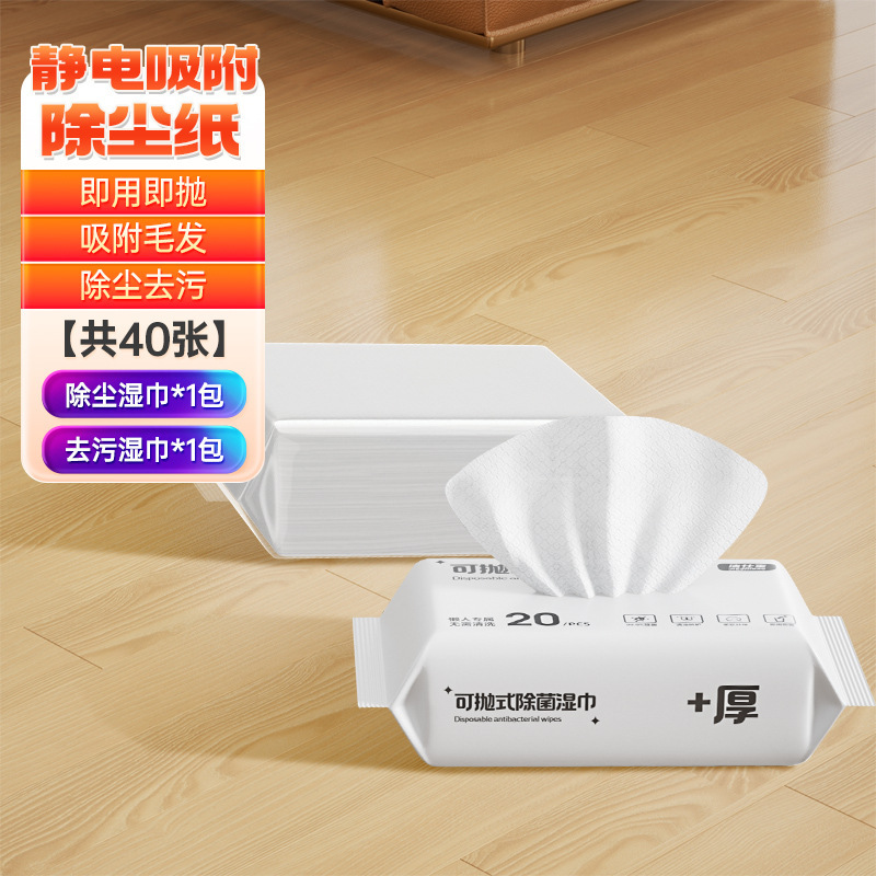 • 먼지 제거 물티슈 1팩 + 살균 물티슈 1팩 [총 40매]