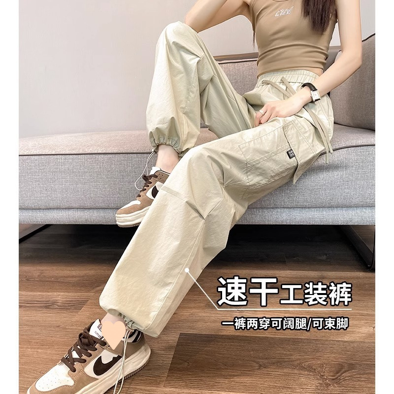 여름용 여성용 아이스 실크 속건성 작업복 얇은 하이 웨이스트 드로스트링 레깅스 하이킹 바지 캐주얼 아메리칸 하렘 스웨트 팬츠스토어 가기