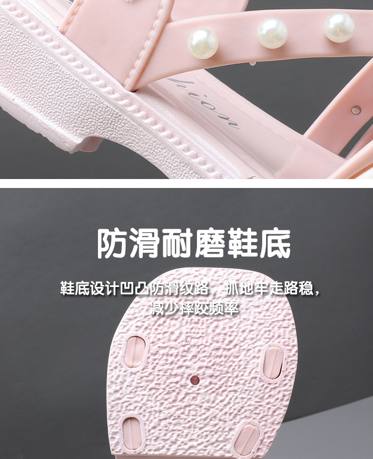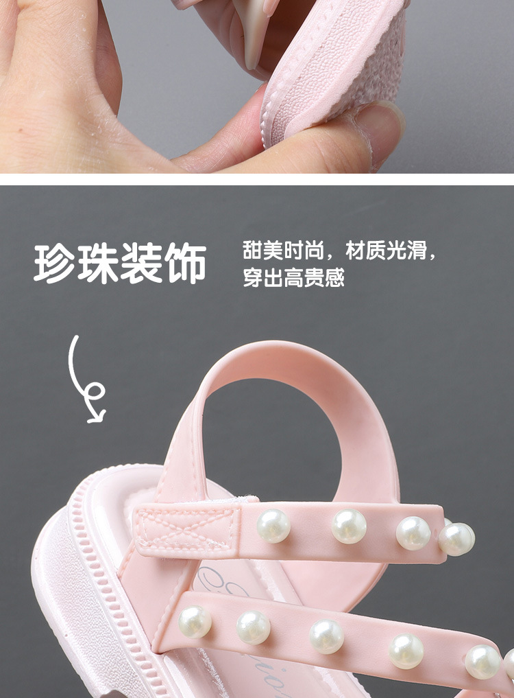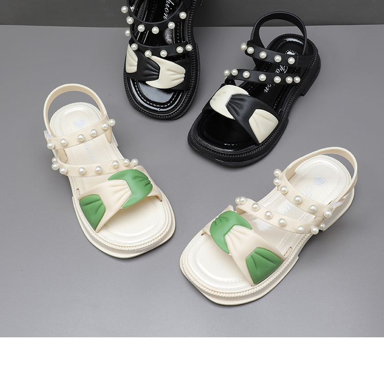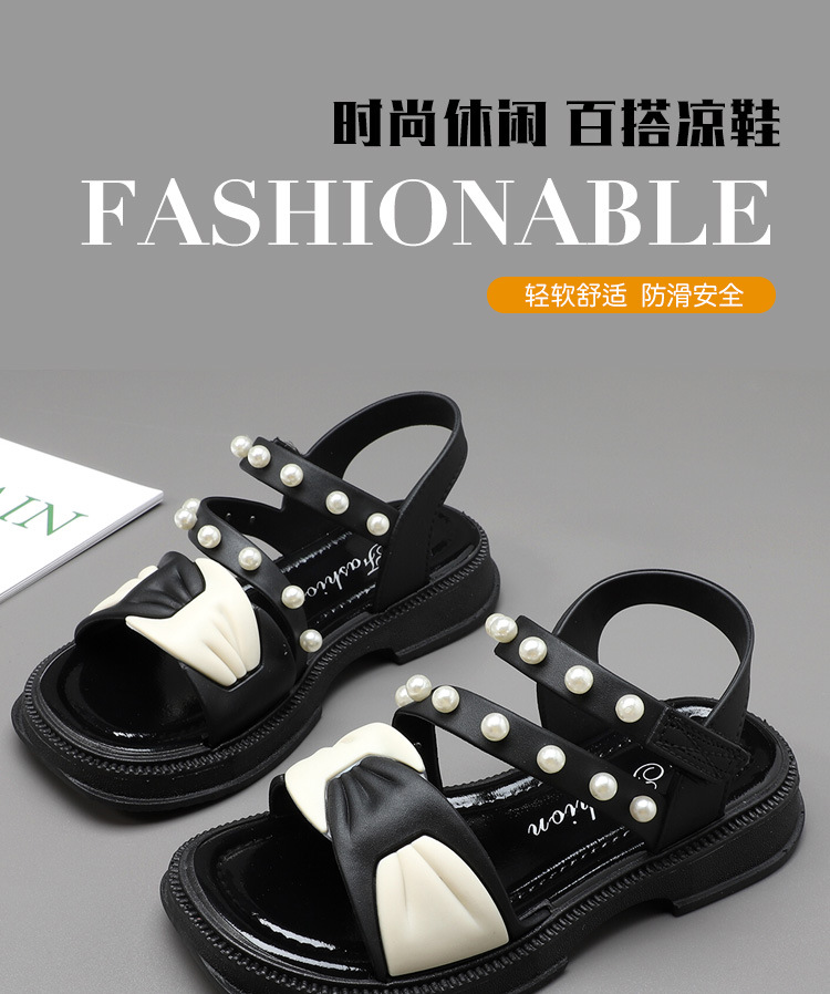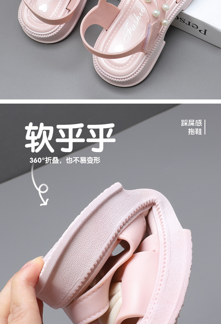 새로운 여자 샌들 여름 부드러운 밑창 샌들 진주 공주 신발 어린이 중소형 어린이 해변 신발 속건성 및 미끄럼 방지