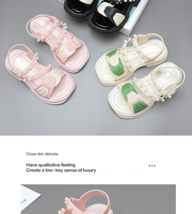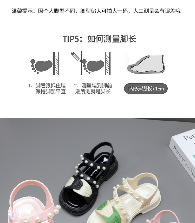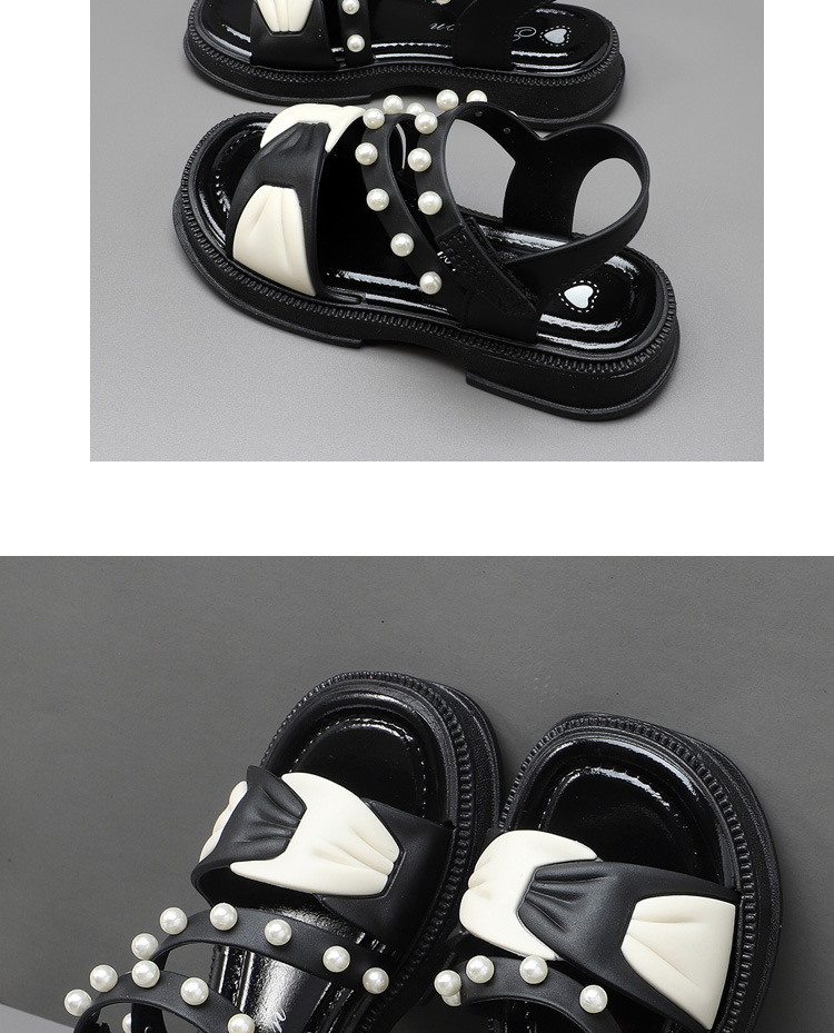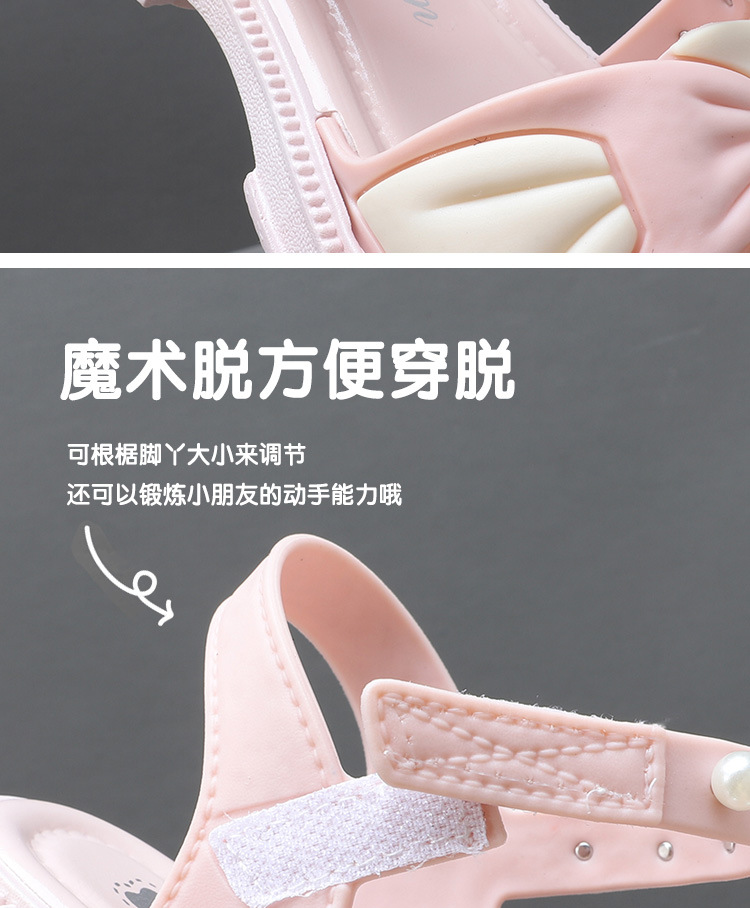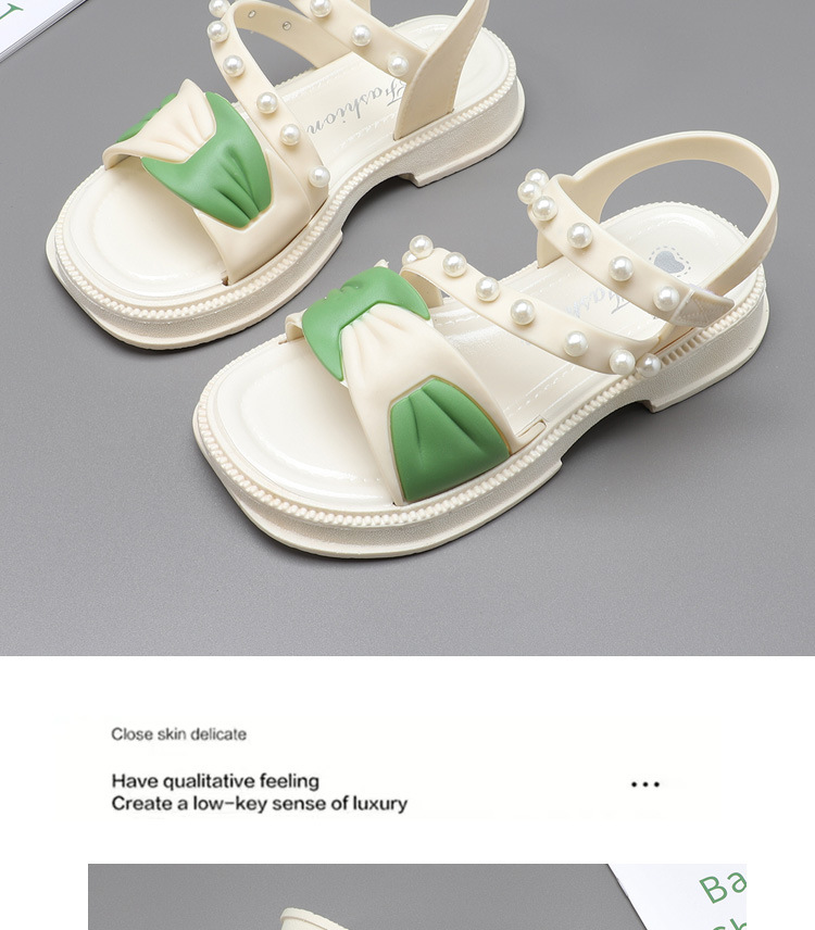 새로운 여자 샌들 여름 부드러운 밑창 샌들 진주 공주 신발 어린이 중소형 어린이 해변 신발 속건성 및 미끄럼 방지
