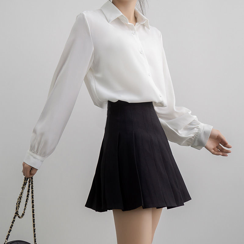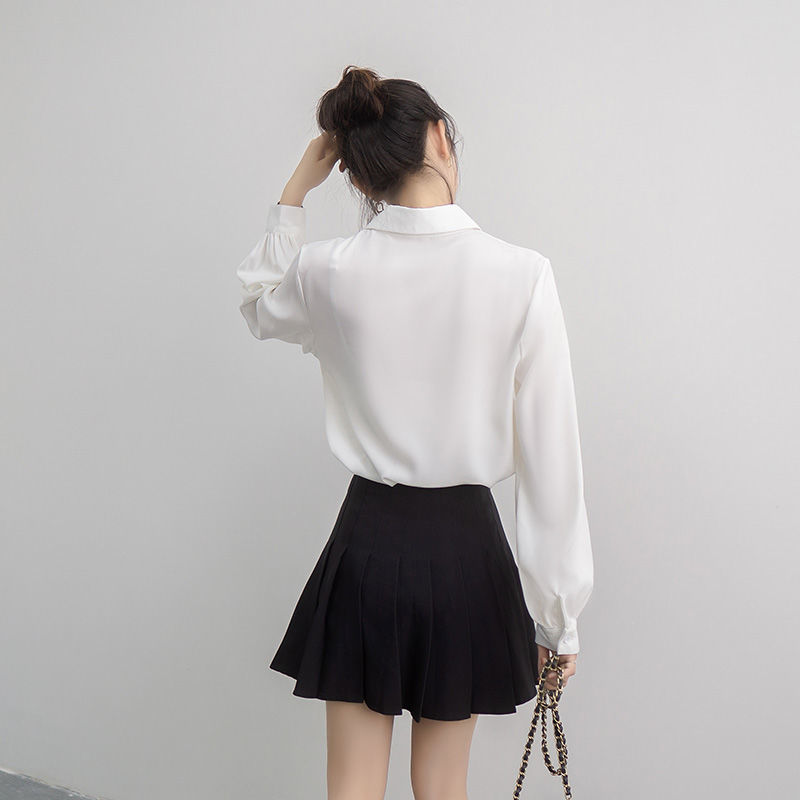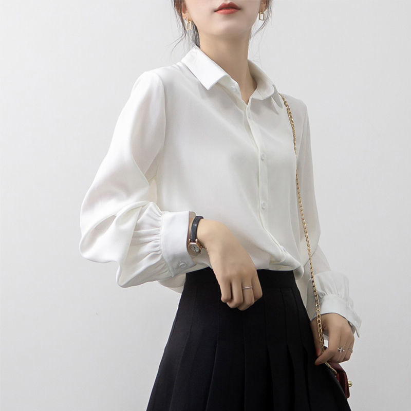 여성용 화이트 셔츠, 다용도 루즈 쉬폰 셔츠, 긴팔 여성용 2025 가을 스타일 여성용 셔츠스토어 가기