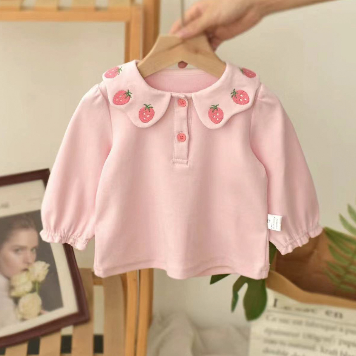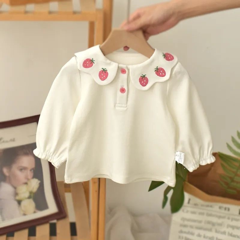 2025 베이비 한국 스타일 셔츠 가을 인형 칼라 셔츠 긴팔 봄, 가을 소녀 탑 셔츠스토어 가기