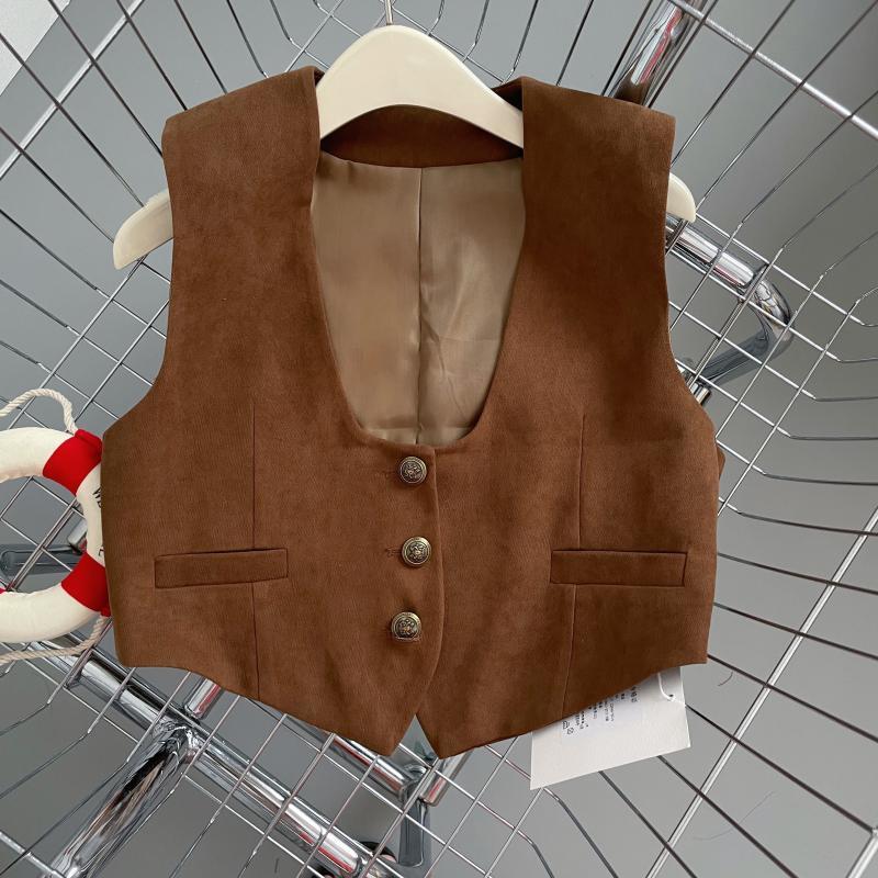 여성을 위한 복고풍 프렌치 브라운 스웨이드 레이어드 짧은 조끼 보헤미안 에스닉 스타일 레이어드 조끼