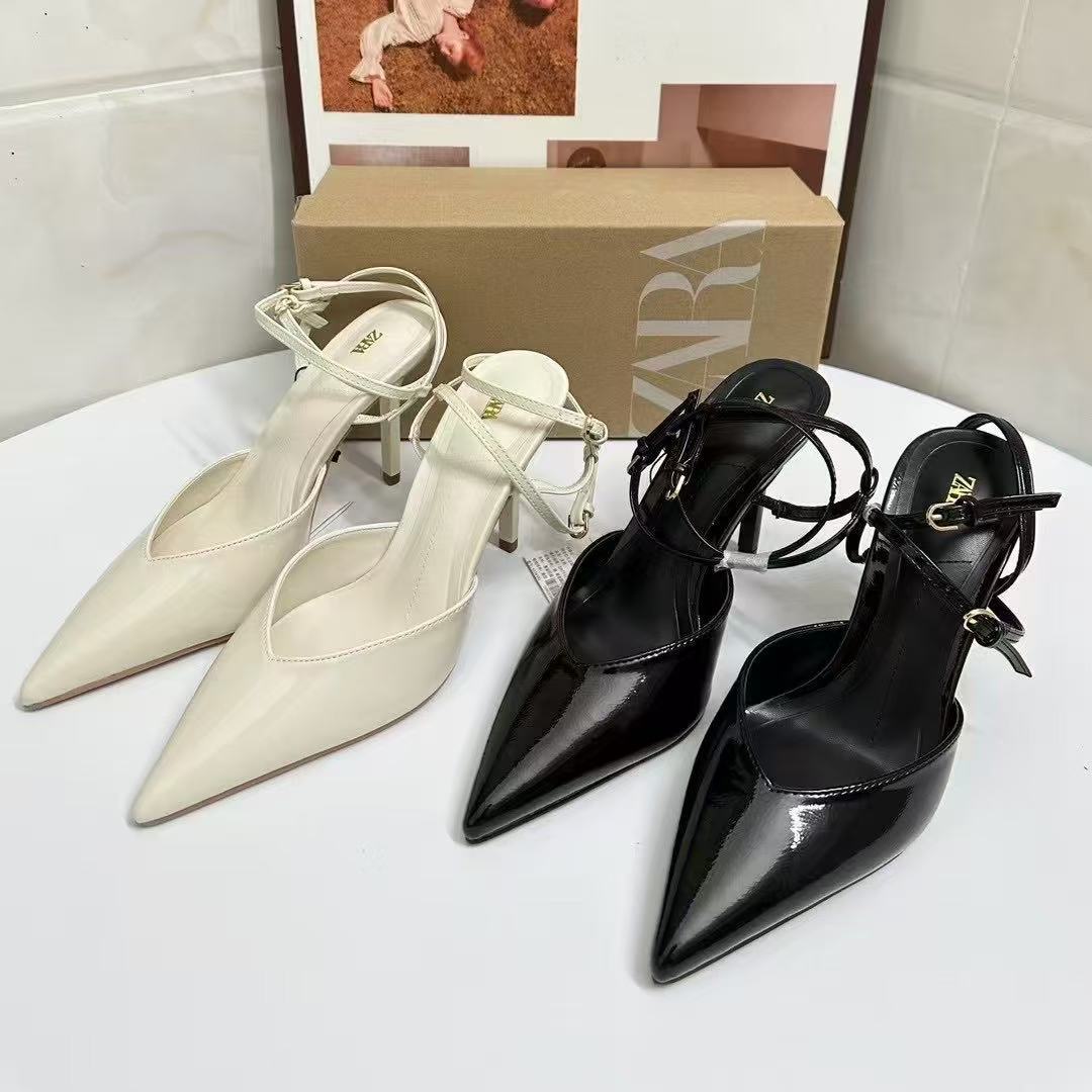 za2025 봄 신상품 페이턴트 가죽 효과 밴드 포인티드 토 하이힐 슬링백 스틸레토 힐 뮬 슈즈스토어 가기