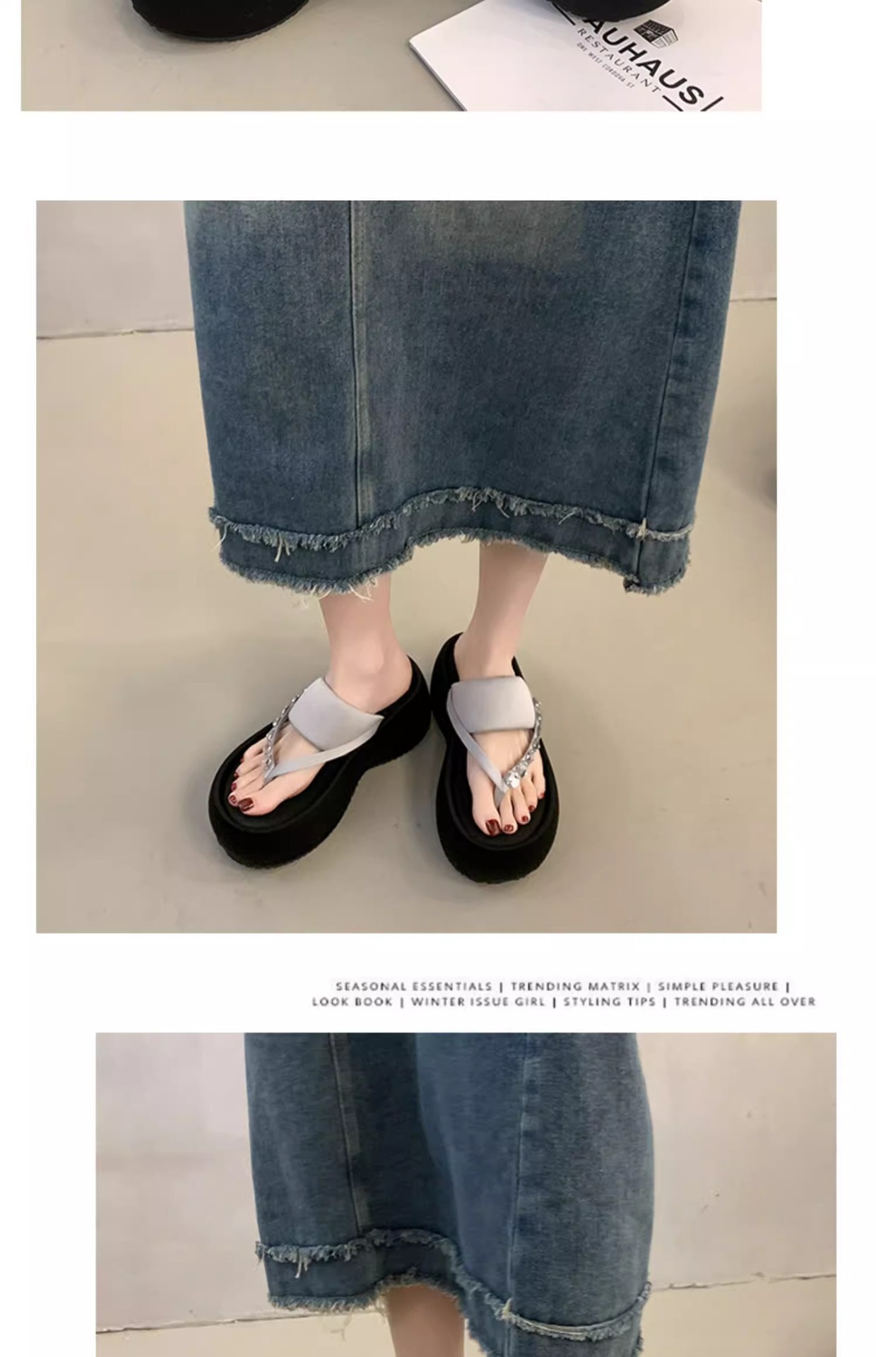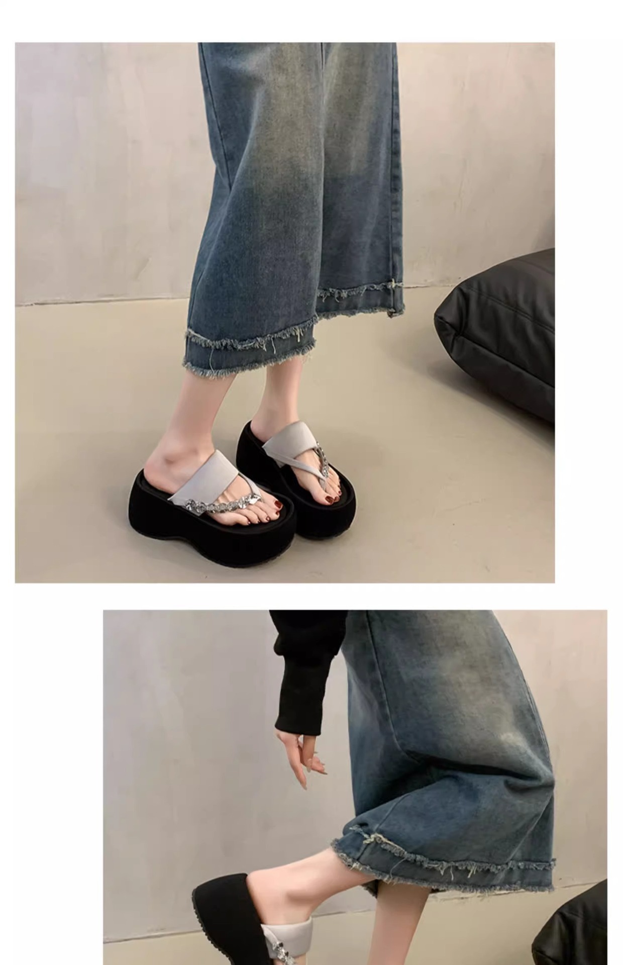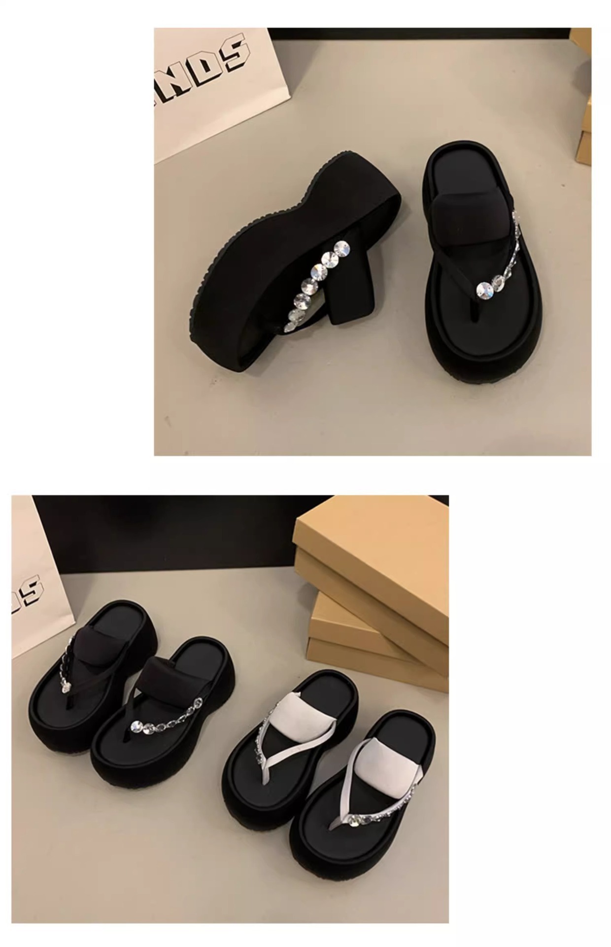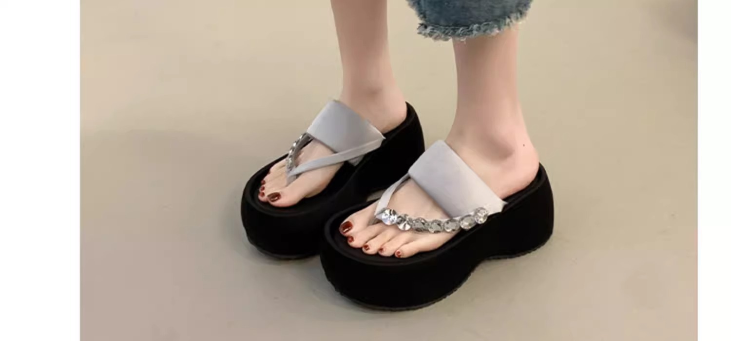 여성용 라인스톤 두꺼운 밑창 슬리퍼, 패셔너블한 신형 로마 슬리퍼, 플랫폼 하이힐 샌들, 작은 발가락 여름스토어 가기