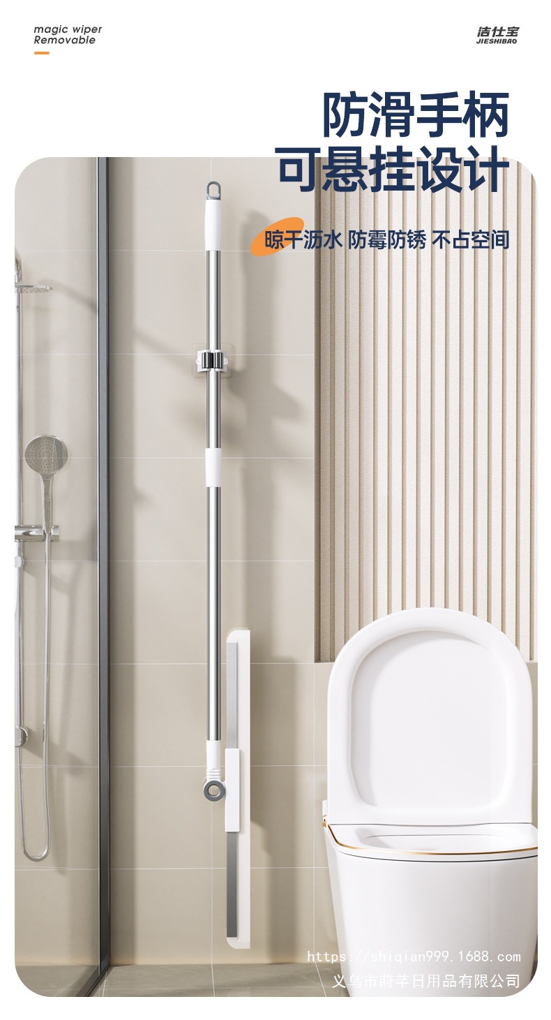 매직 빗자루 가정용 바닥 긁기, 물 제거 및 걸레질, 이중 목적 실리콘 청소 빗자루, 욕실 및 욕실 머리카락