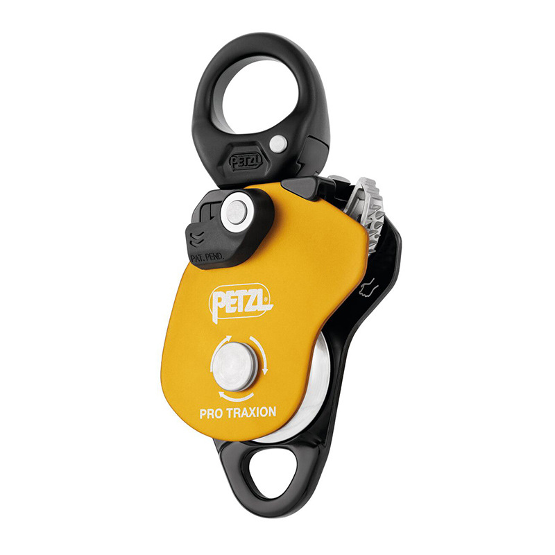 PETZL PRO TRAXION에는 범용 조인트가 장착되어 있어 낙하 방지 및 고효율 단방향 정지 풀리가 있습니다.