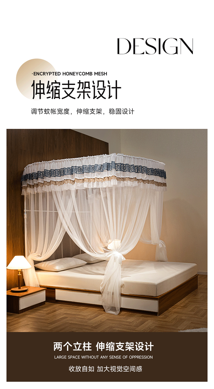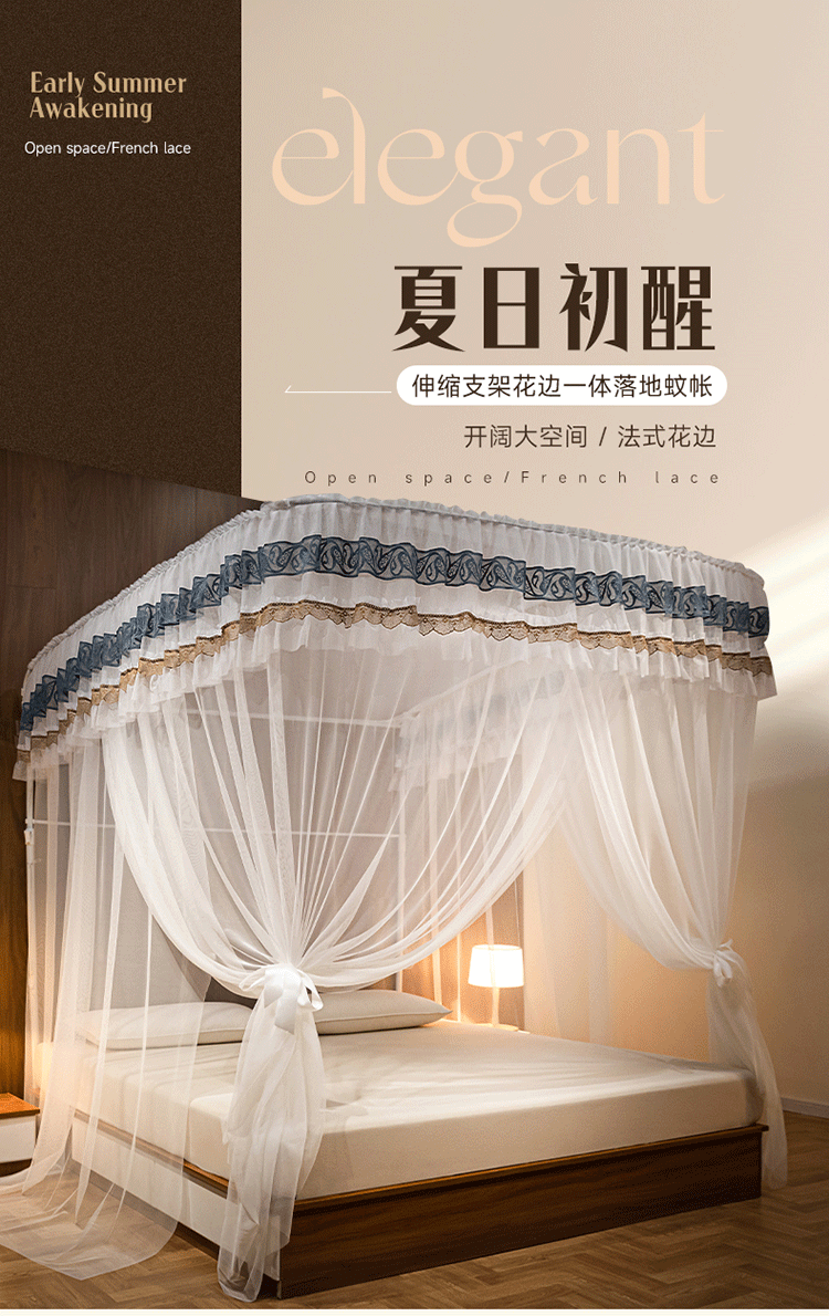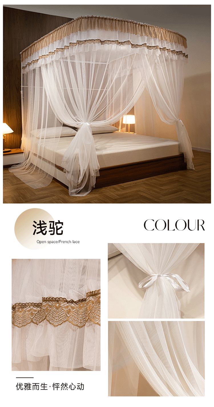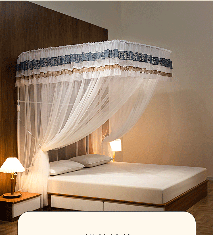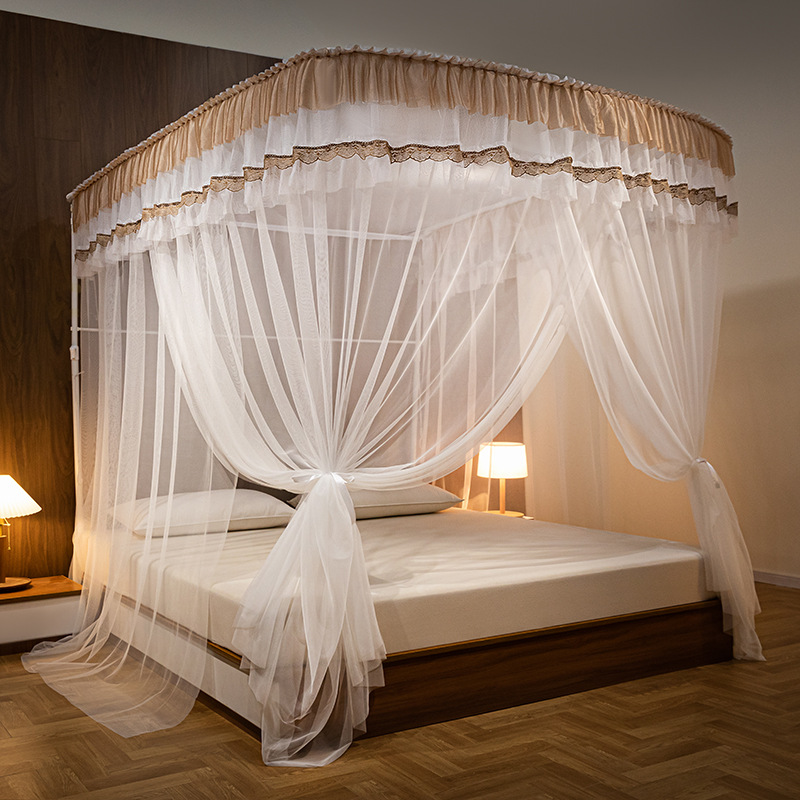 가정용 침실용 U자형 접이식 모기장 3개의 문이 있는 1.5개의 프랑스 공주 암호화 침대 커튼이 들어올릴 수 있는 드롭 배송