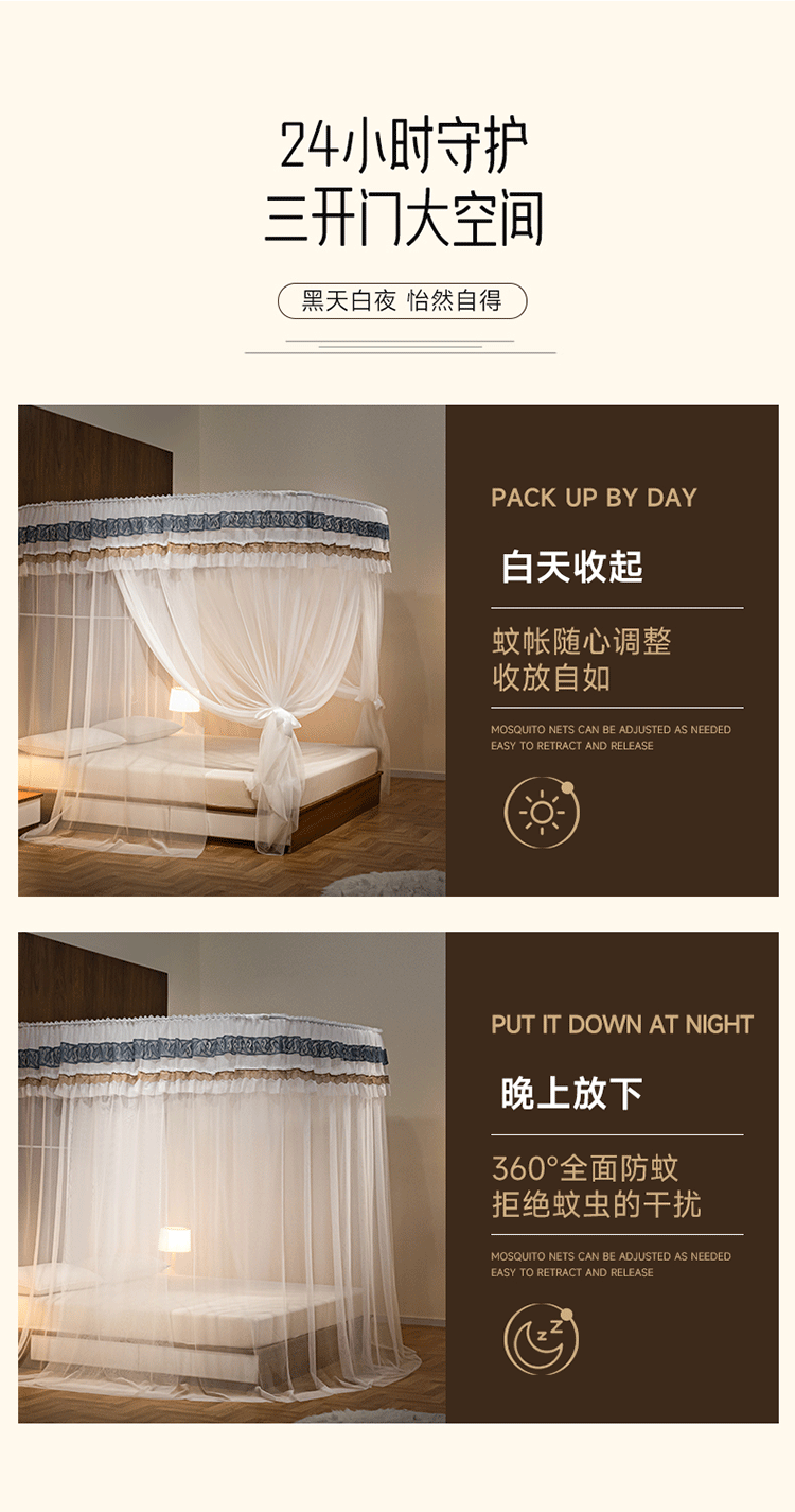 가정용 침실용 U자형 접이식 모기장 3개의 문이 있는 1.5개의 프랑스 공주 암호화 침대 커튼이 들어올릴 수 있는 드롭 배송스토어 가기