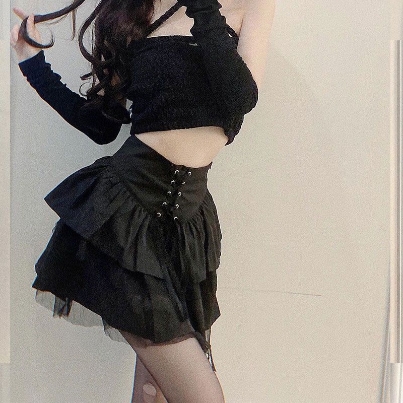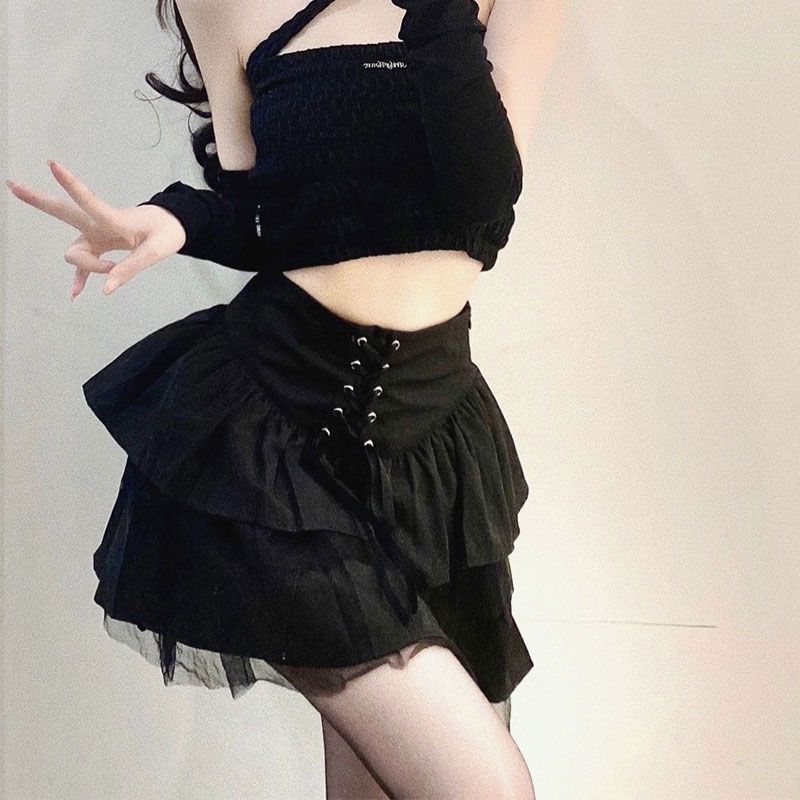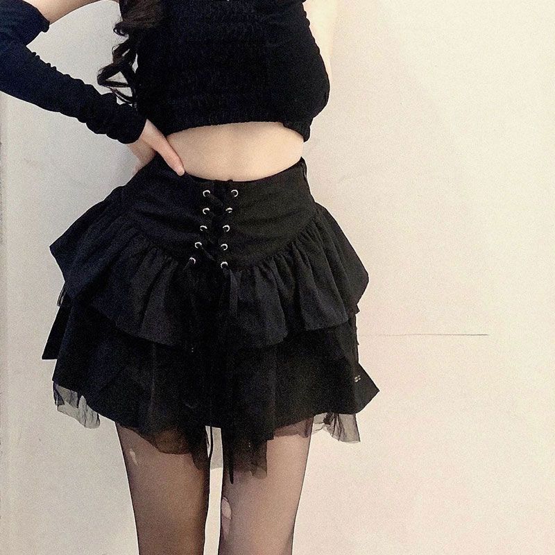 여름에 잘 어울리는 새로운 스타일의 컬리지 스타일 다크 하이웨이스트 슬리밍 허리 핫걸 퍼프 스커트 여성용스토어 가기