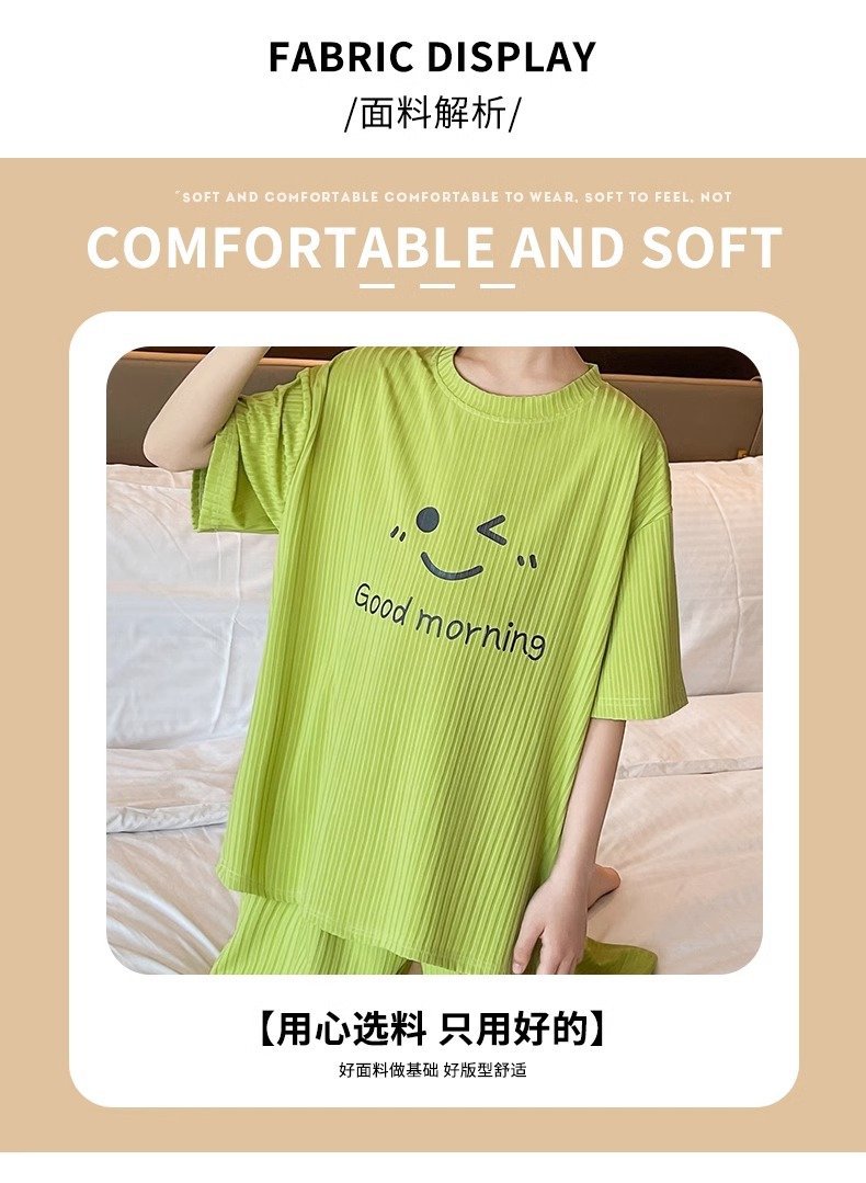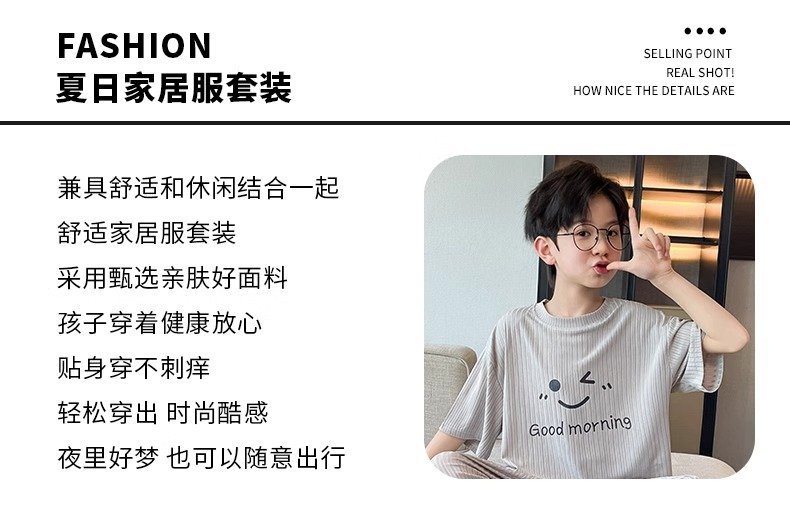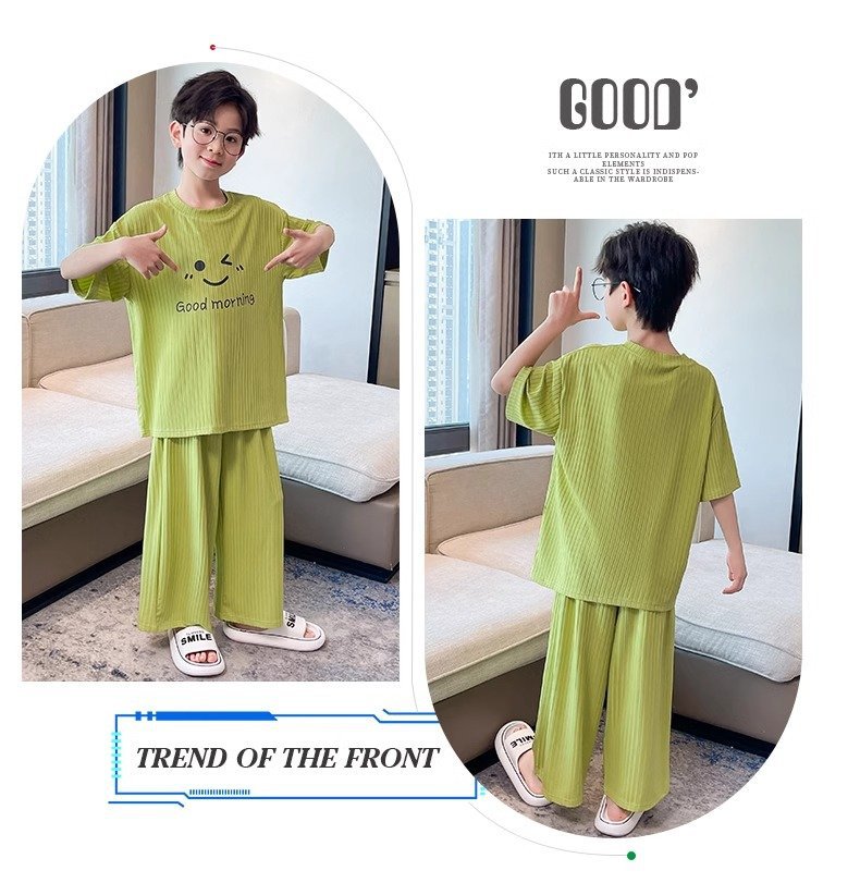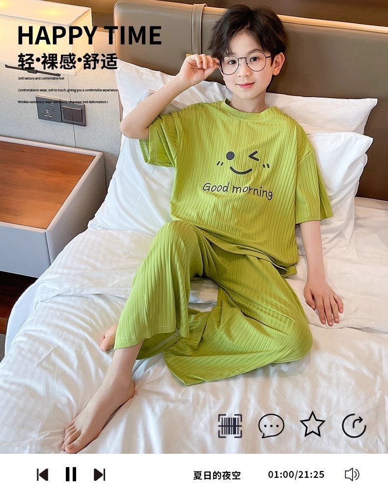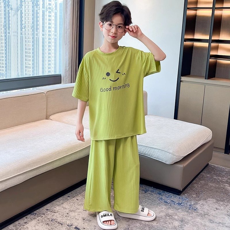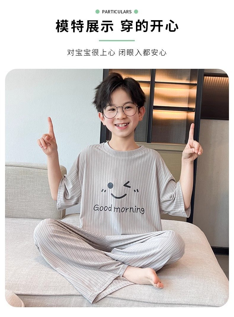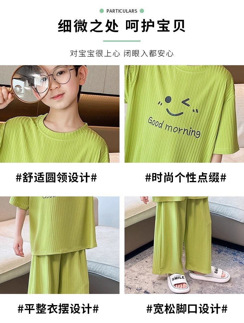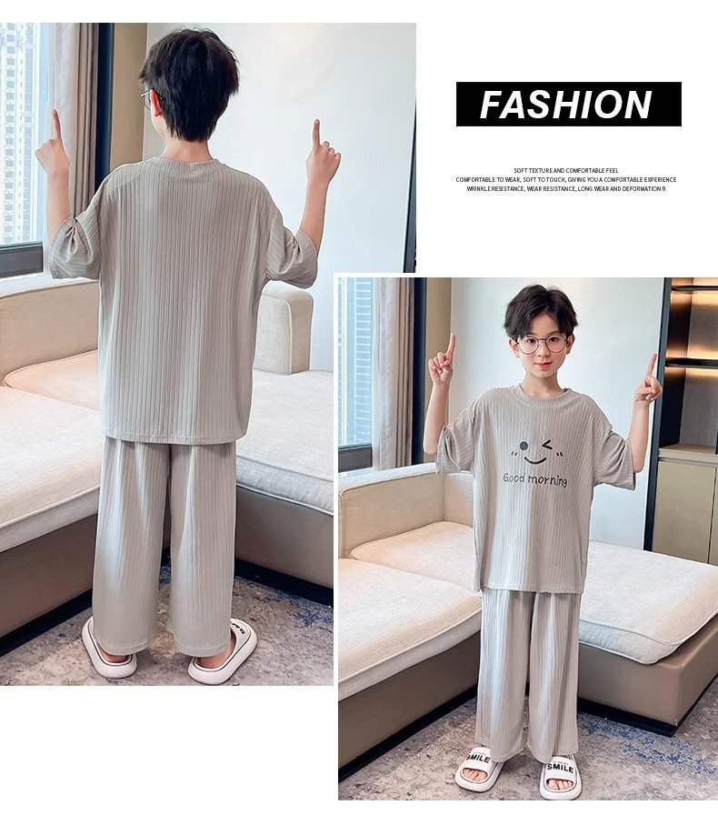 아동용 가정복 남성용 여름 신작 얼음 실크 반팔 소년 잠옷 세트 루즈한 겉옷 중대형 아동용 에어컨 의류스토어 가기