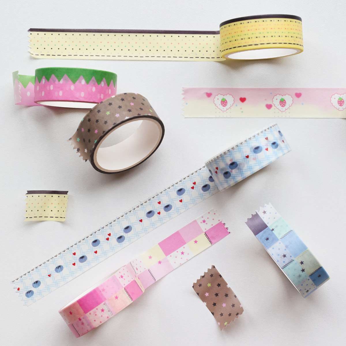 한국 다섯개 별 와시 테이프 롤 딸기 사랑 기본 접합 색상 핸드북 DIY 장식 재료 테이프