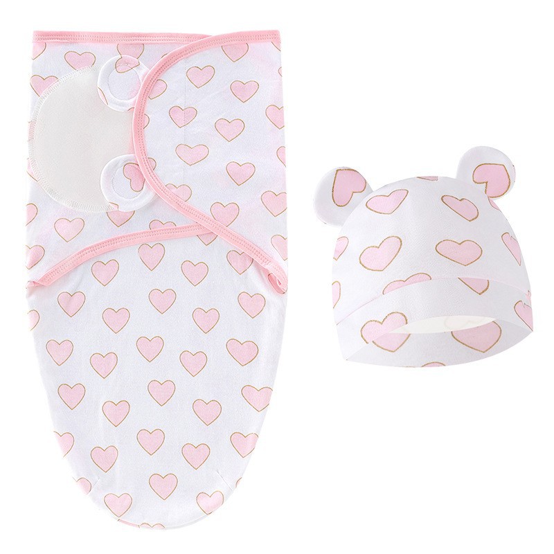 • 핑크 러브 스프링 누에 침낭 + 컬러풀 챙모자 (2종세트)