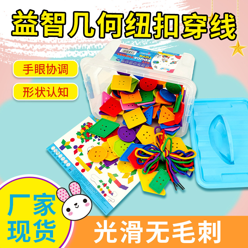 기하학 버튼 스레딩 유치원 교육 조기 교육 장난감 DIY 어린이 데스크탑 교육 빌딩 블록 스레딩 도매스토어 가기