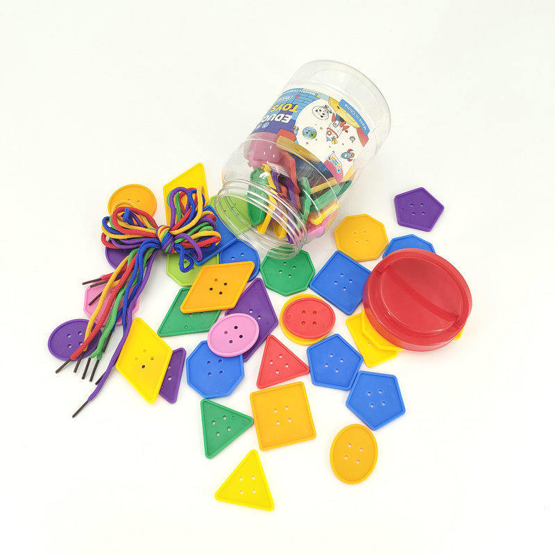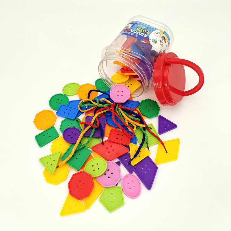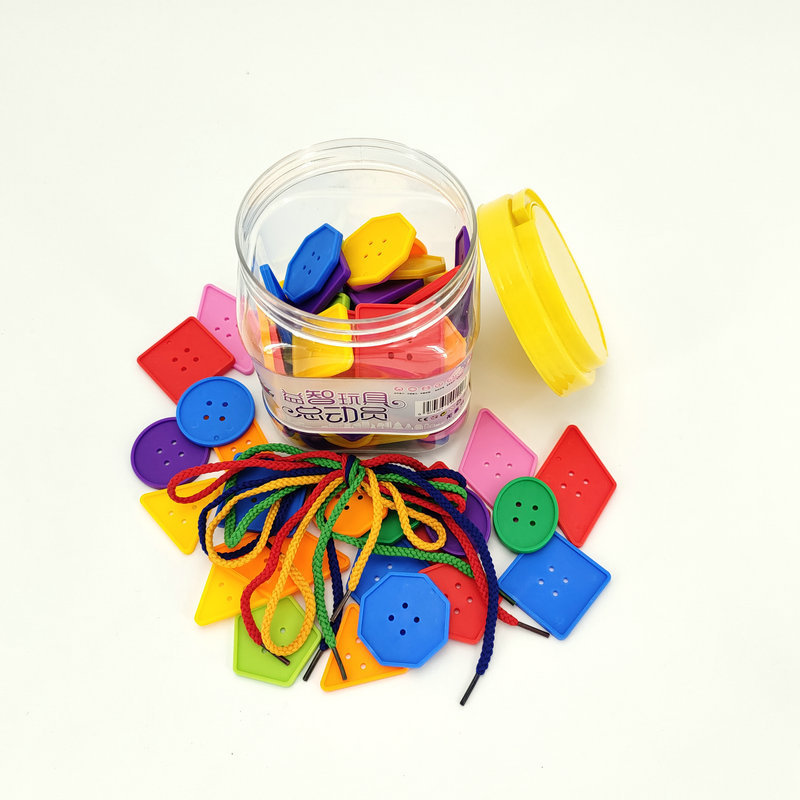 기하학 버튼 스레딩 유치원 교육 조기 교육 장난감 DIY 어린이 데스크탑 교육 빌딩 블록 스레딩 도매