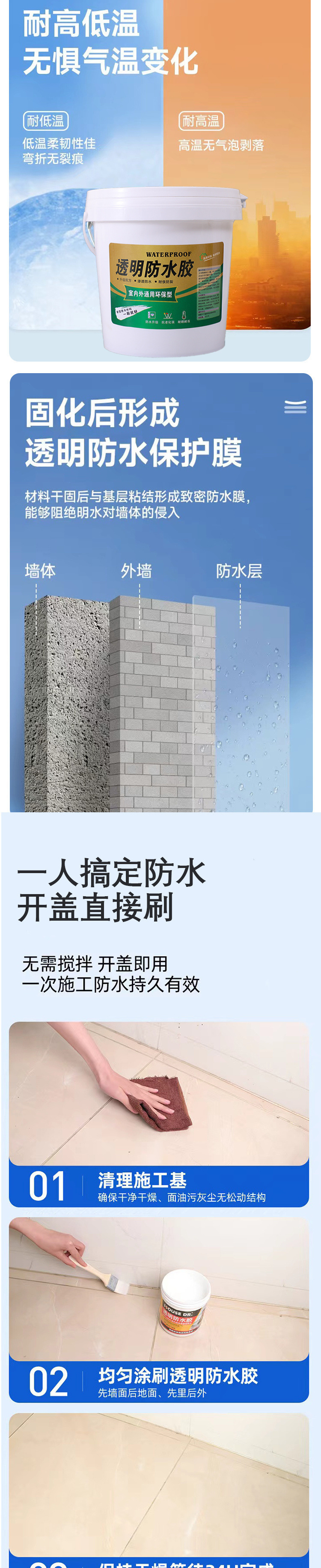 투명 방수 접착제 외벽 방수 및 누수 방지 코팅 페인트 자외선 차단제 동결 방지 속건성 지붕 벽 균열 욕실스토어 가기