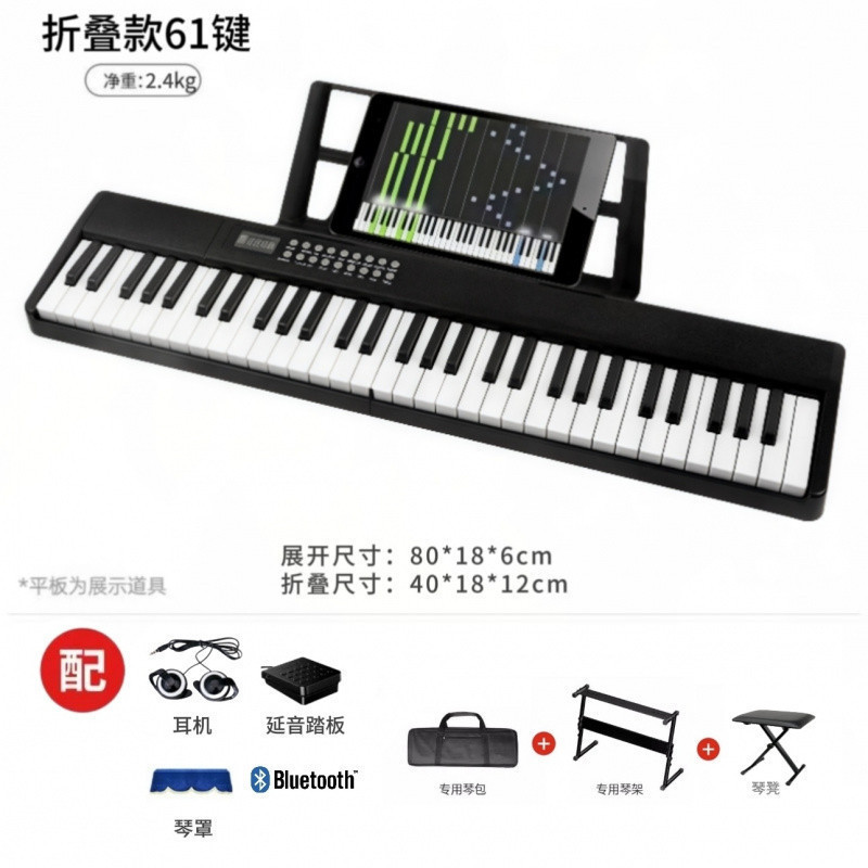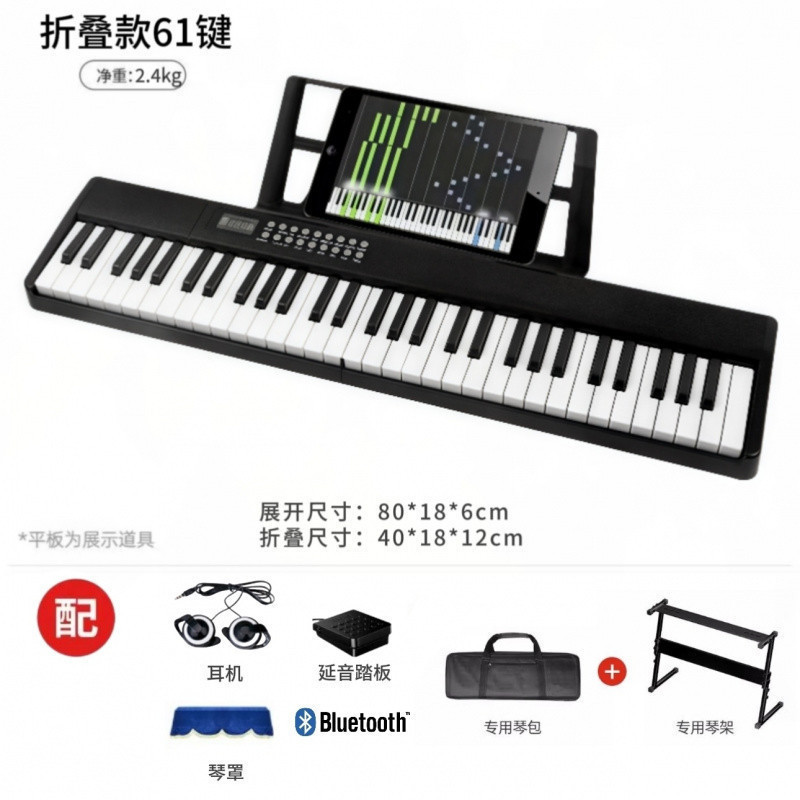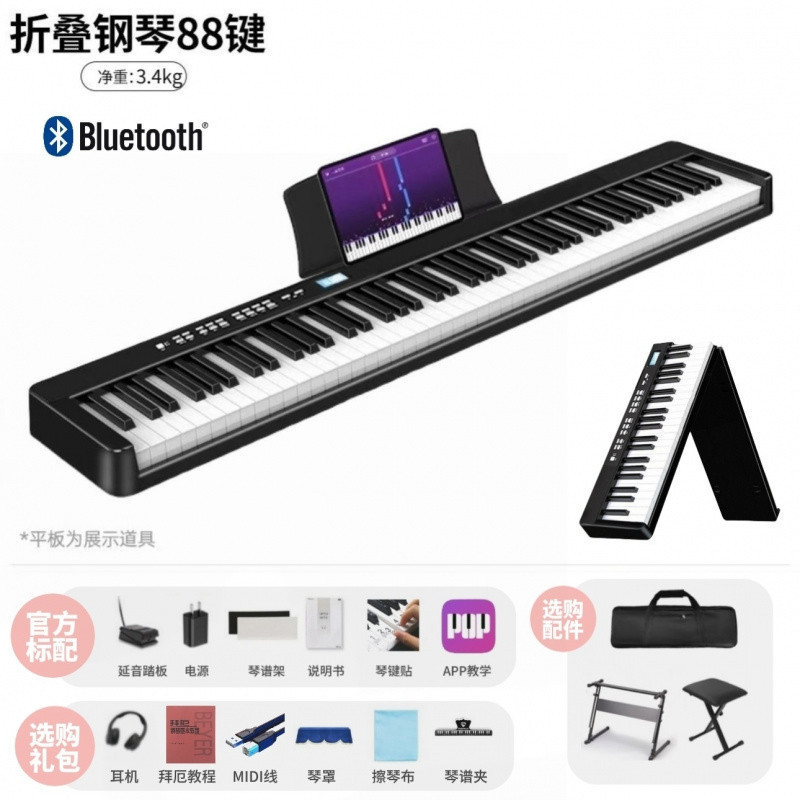 • 88키 폴딩 모델 [블루투스 버전] 블랙 - 표준 구성 + 선물 가방 + 피아노 가방 + 피아노 스탠드