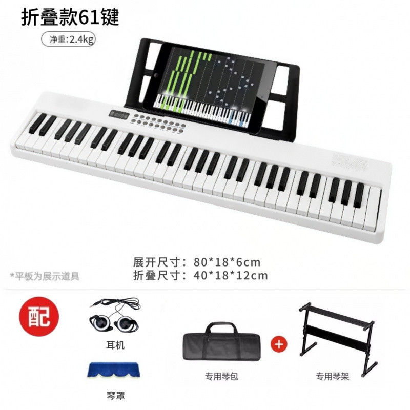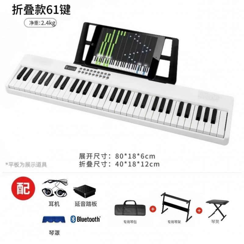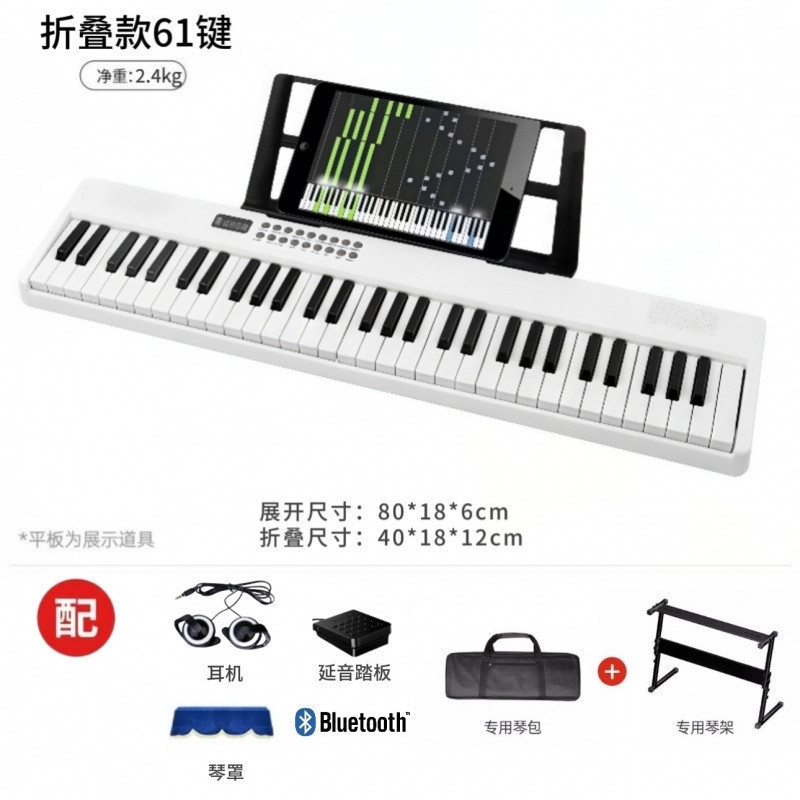 • 61키 폴딩 모델 [블루투스 버전] 화이트 - 표준 구성 + 선물 가방 + 피아노 가방 + 피아노 스탠드