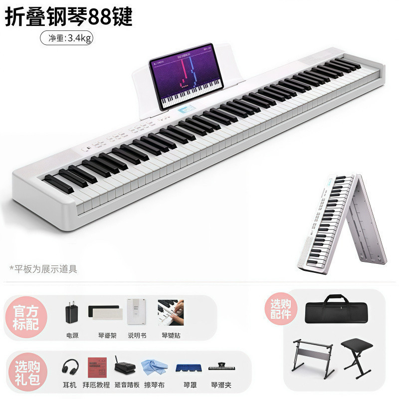 • 88키 폴딩 모델 [블루투스 라이트 버전] 화이트 핑크 건반 - 표준 구성 + 선물 가방 + 피아노 가방 + 피아노 스탠드 + 피아노 벤치
