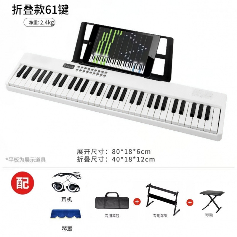 • 61키 폴딩 모델 [블루투스 라이트 버전] 화이트 - 표준 구성 + 선물 가방 + 피아노 가방 + 피아노 스탠드 + 피아노 벤치