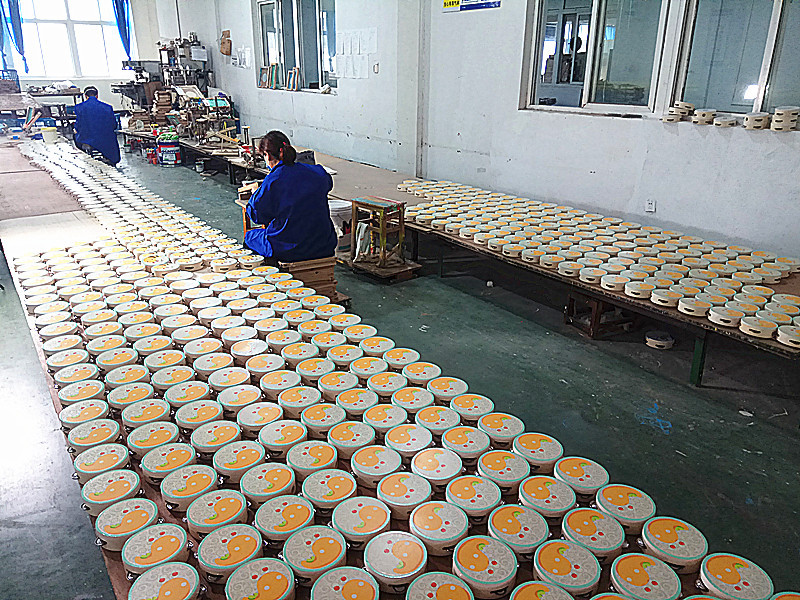 새로운 Orff 타악기 어린이 핸드 클랩 드럼 6inch 단단한 나무 휴대용 드럼 장난감 양피 드럼 조기 교육 교육 보조 장치