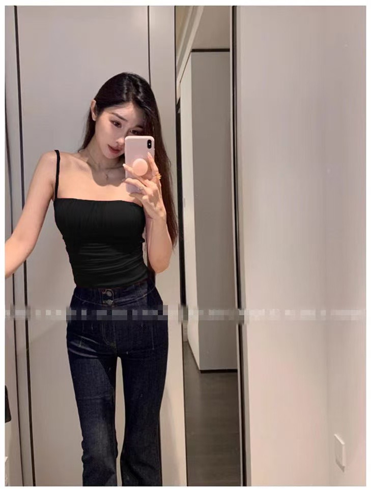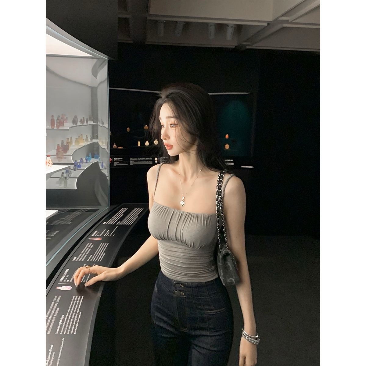 여름 섹시한 여성용 새로운 스타일의 플리츠 캐미솔, 슬림핏, 다용도, 내부 레이어, 가슴 패드, 아우터 탑