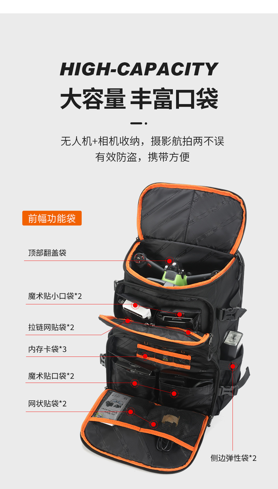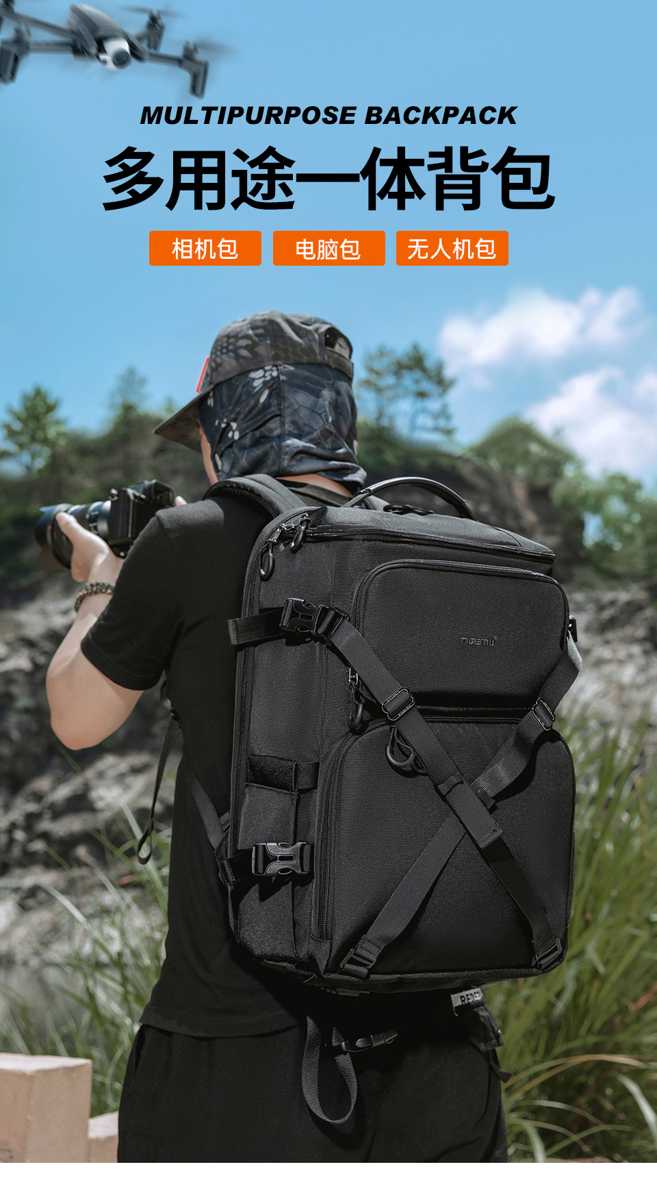 新款男单反双肩相机包旅行大容量无人机包多功能防水摄影设备背包