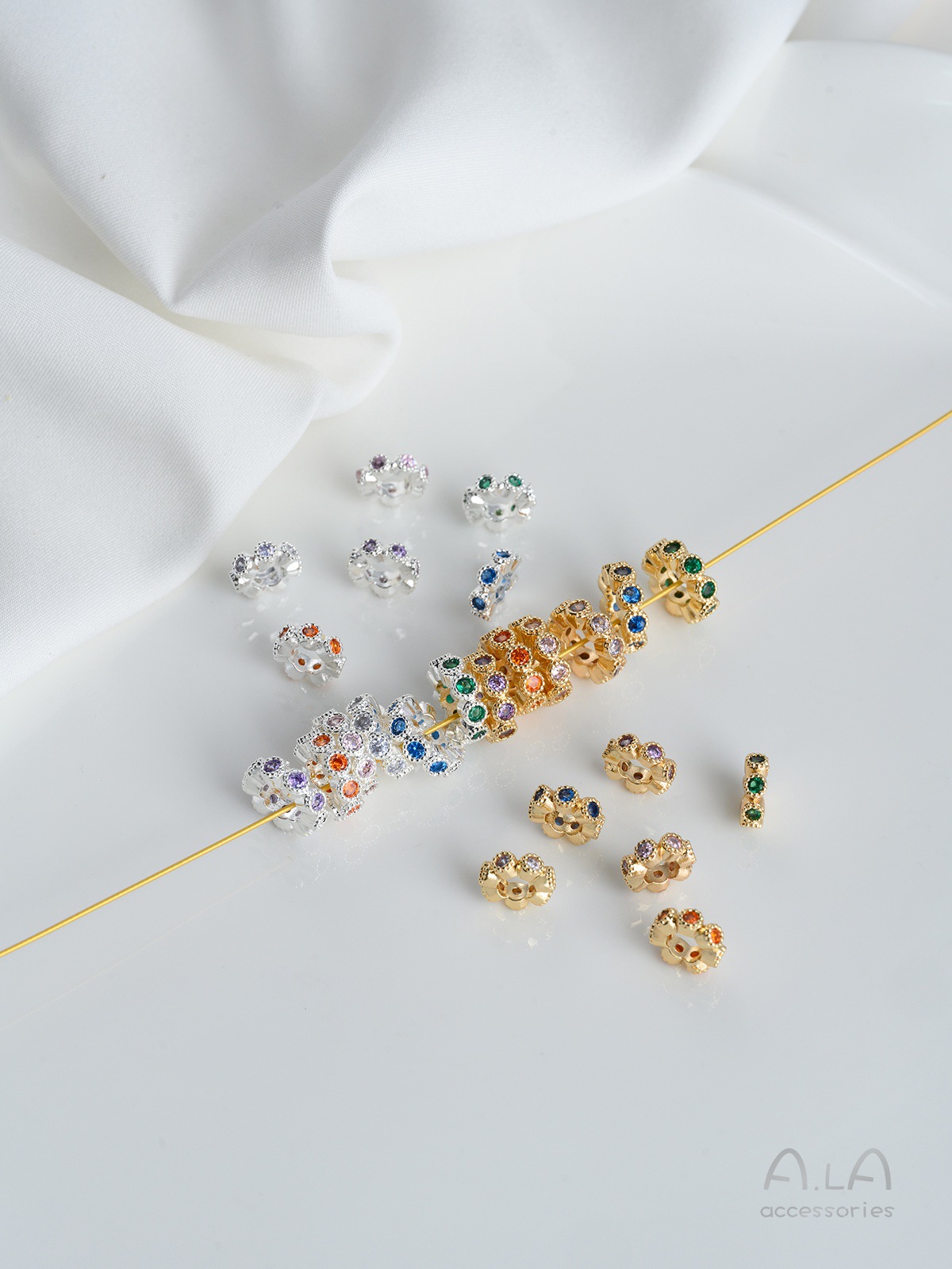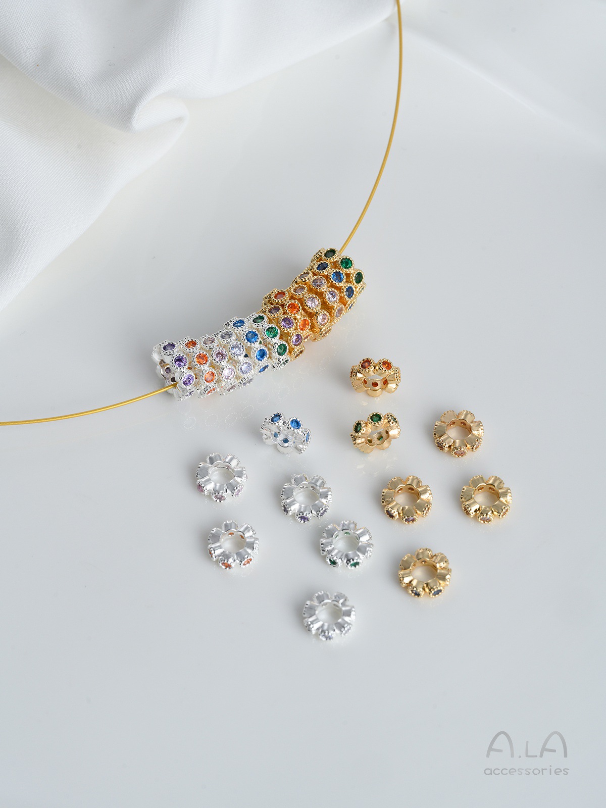 14k 패키지 리얼 골드 전기 도금 마이크로 상감 컬러 지르콘 밝은 실버 비즈 쥬얼리 액세서리 수제 diy 목걸이 액세서리스토어 가기