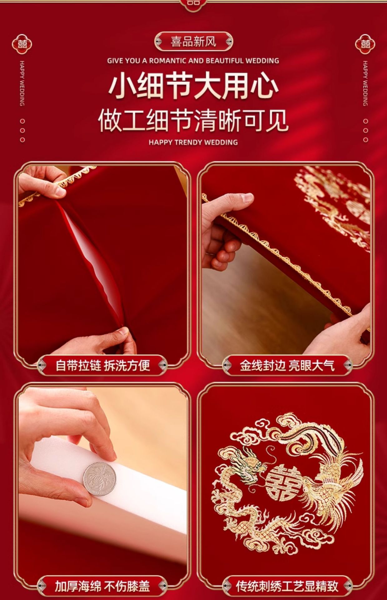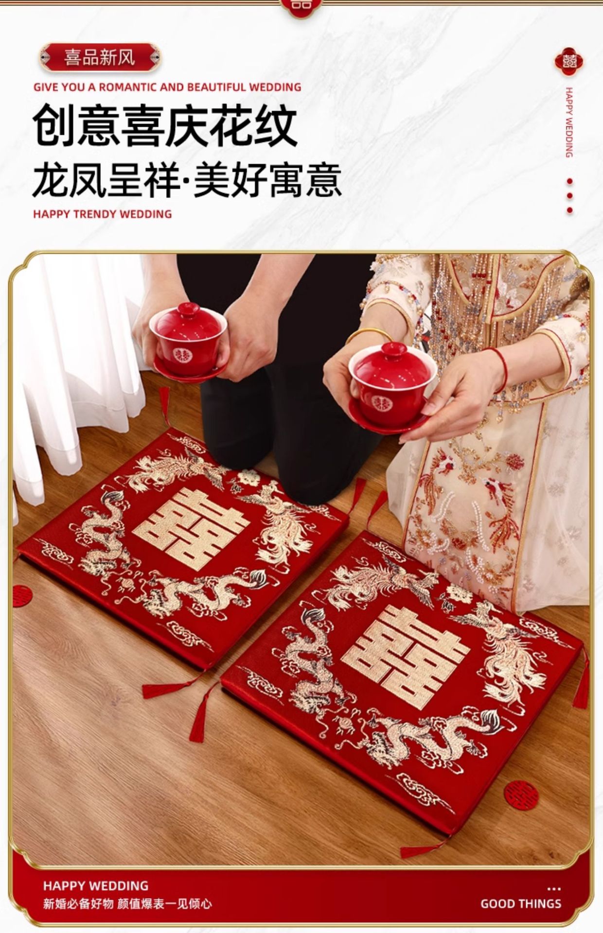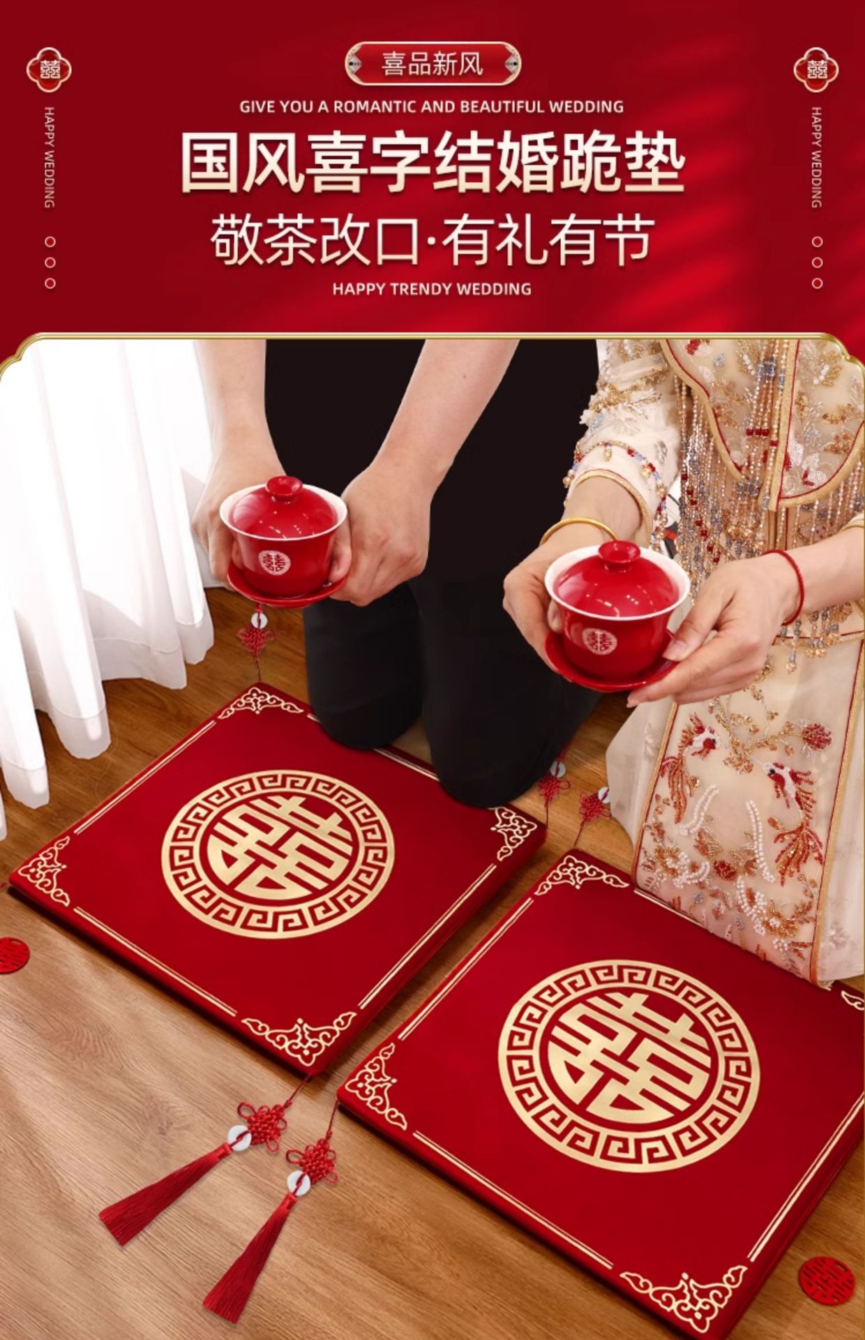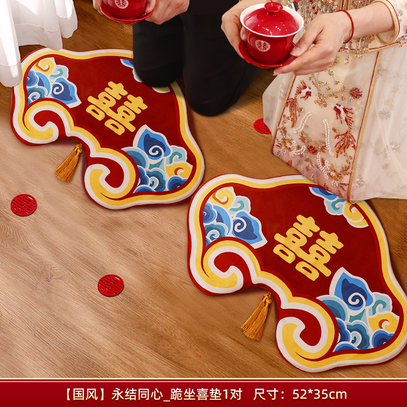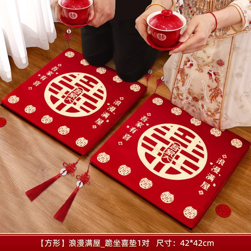 결혼식 무릎꿇기 쿠션, 차를 마시는 무릎꿇기 쿠션 한 쌍, 붉은 결혼식, 신부의 행복한 말과 축복 쿠션 세트 용품스토어 가기